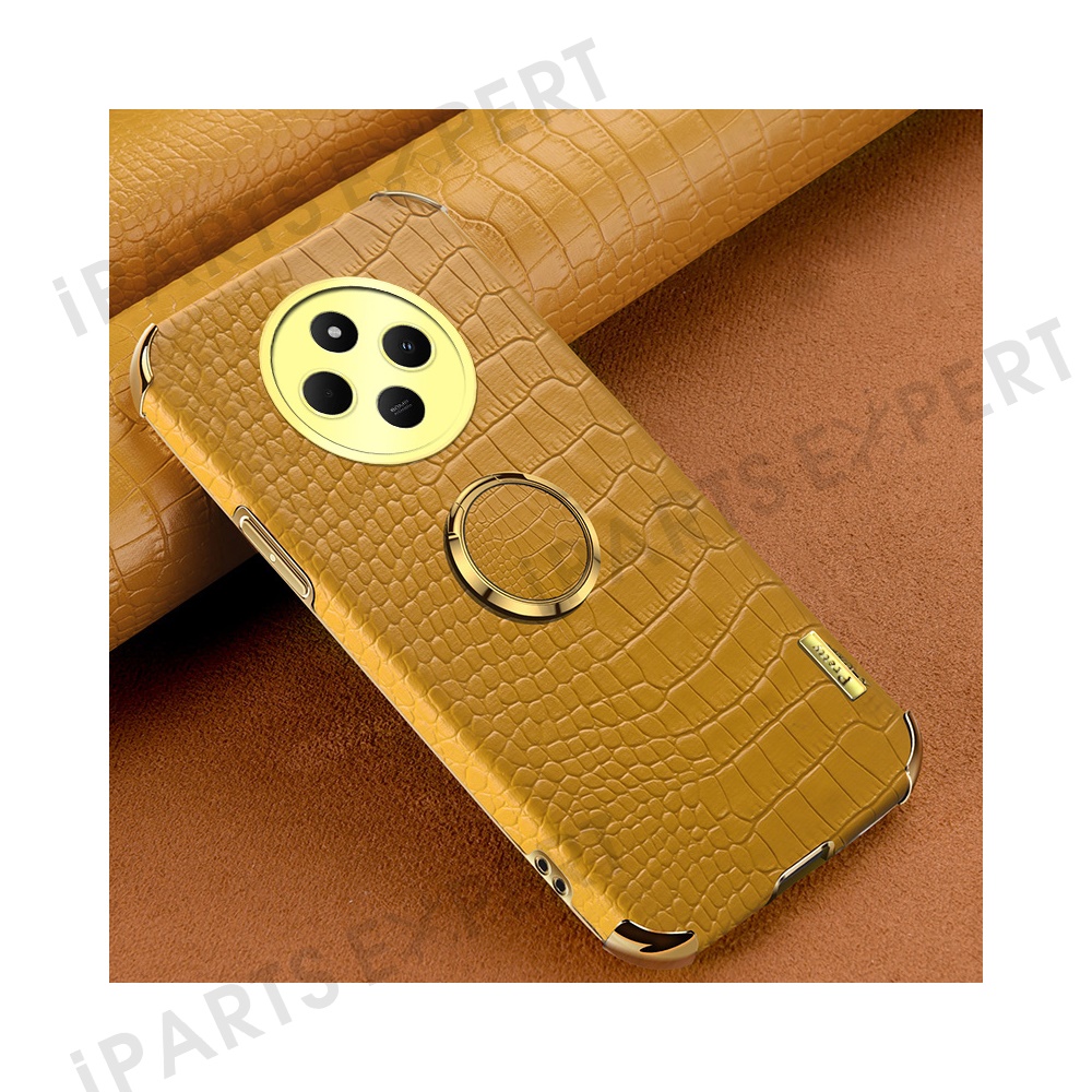 Kickstand Case for Xiaomi Poco C75 4G / 14R 5G / 14C 4G Crocodile Texture TPU + PU Electroplating Phone Cover - Yellow