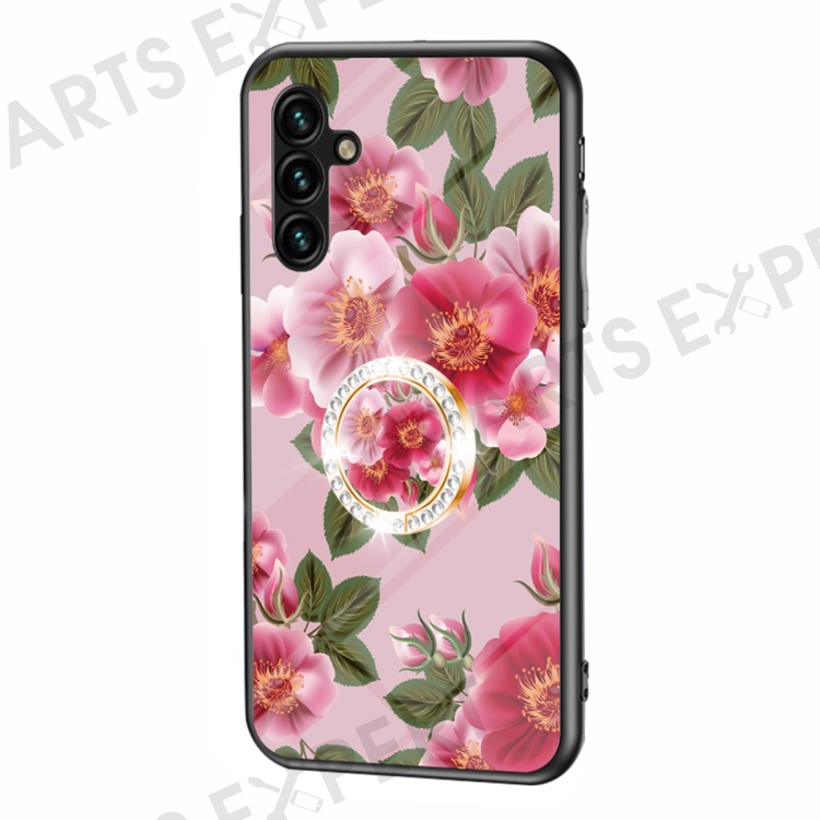 Kickstand Phone Case for Samsung Galaxy A54 5G Flower Pattern Tempered Glass+PC+TPU Cover - Glamorous Peony
