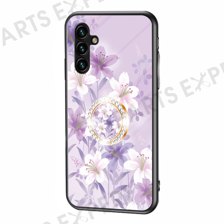 Kickstand Phone Case for Samsung Galaxy A54 5G Flower Pattern Tempered Glass+PC+TPU Cover - Purple Magnolia