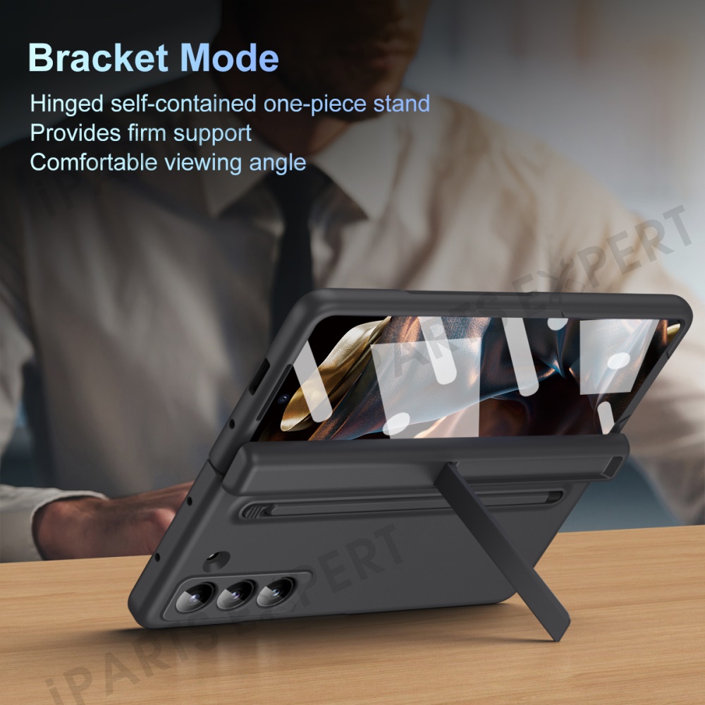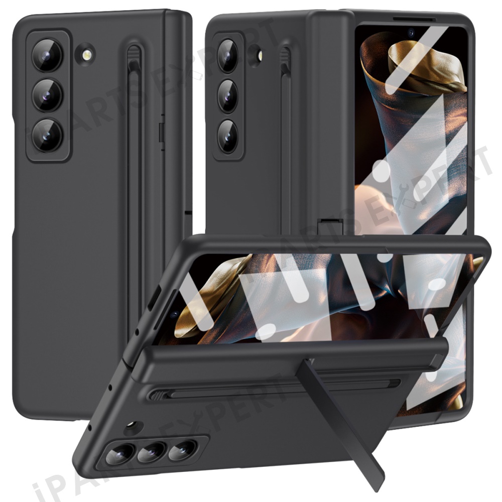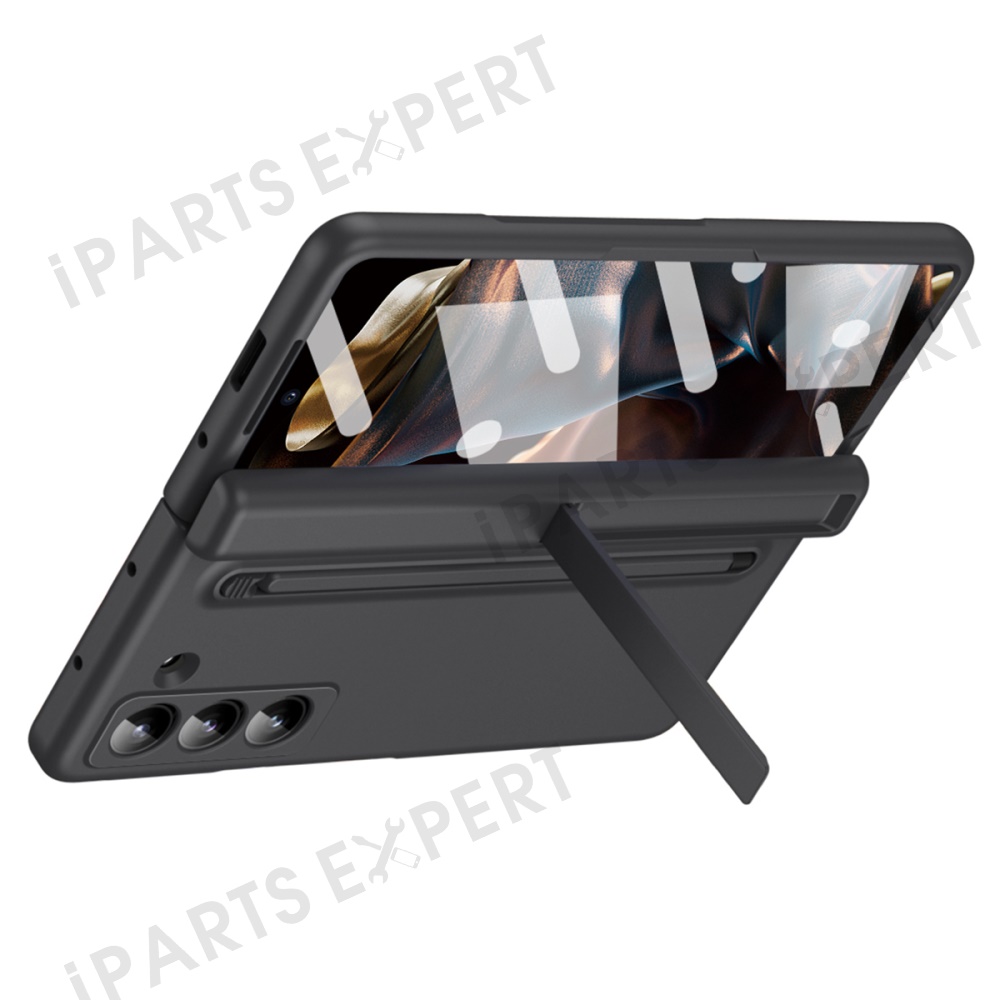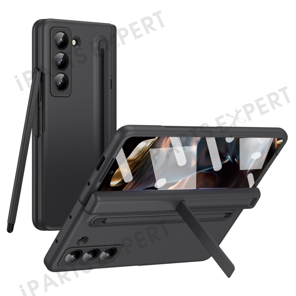 Kickstand Phone Case for Samsung Galaxy Z Fold Special / Z Fold 6 Slim / W25 PC Back Cover with Stylus and Tempered Glass Film - Black
