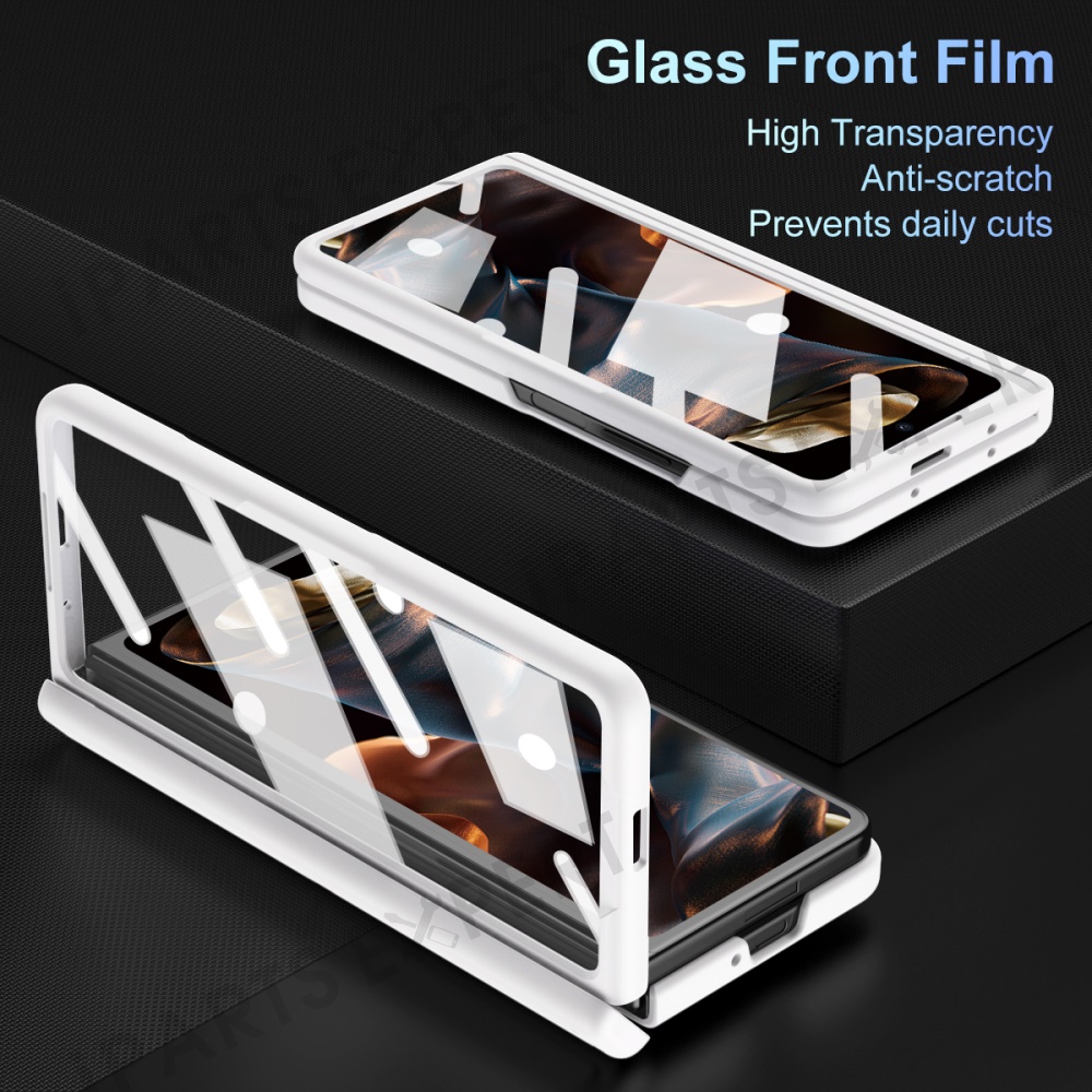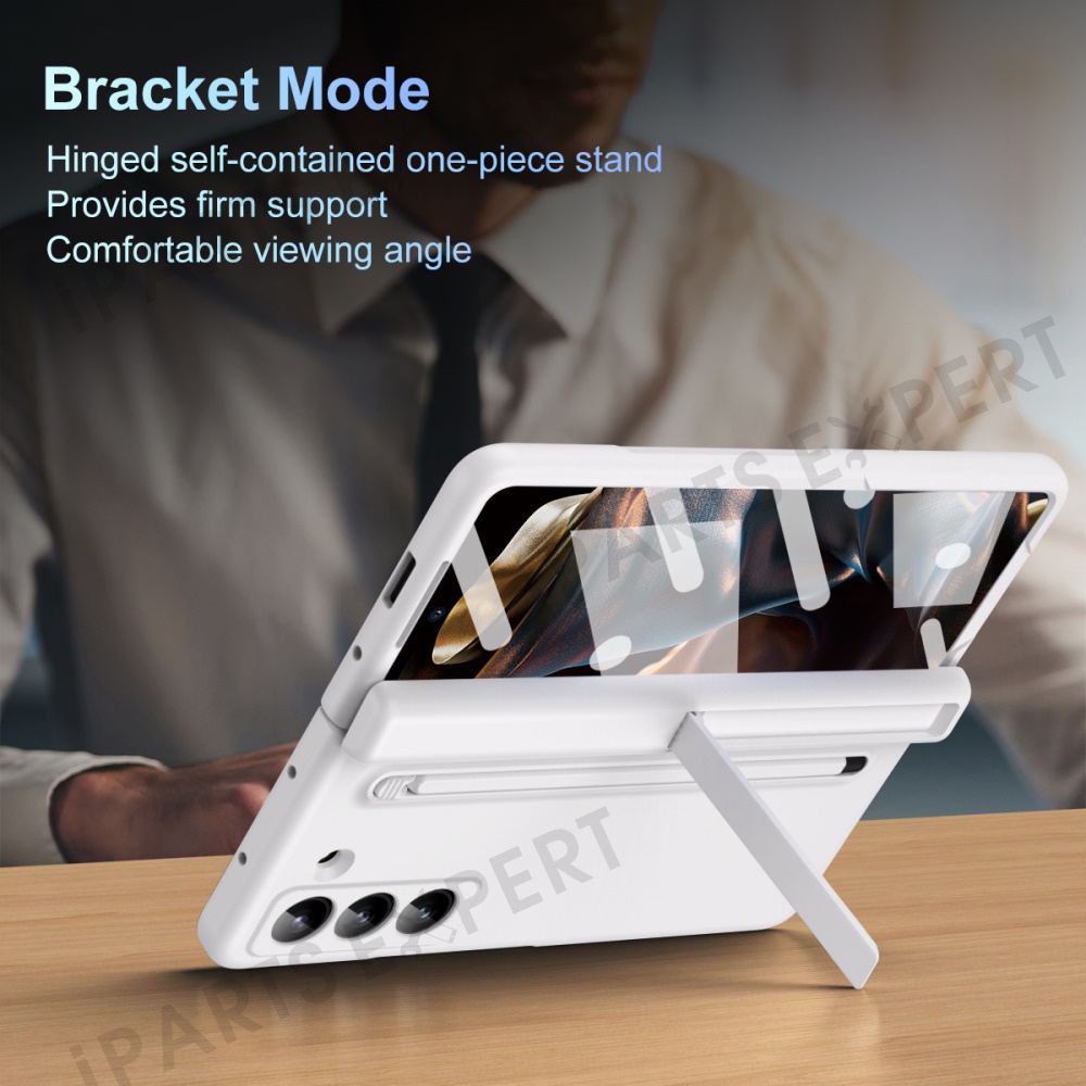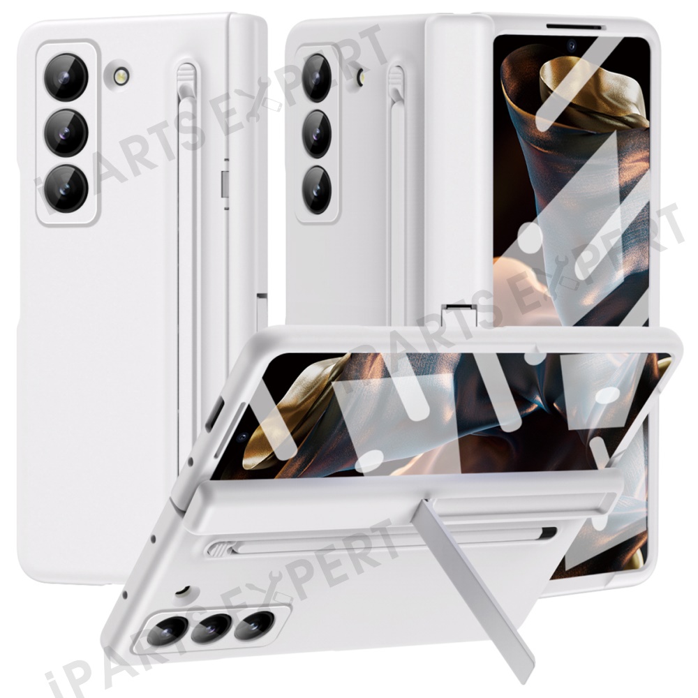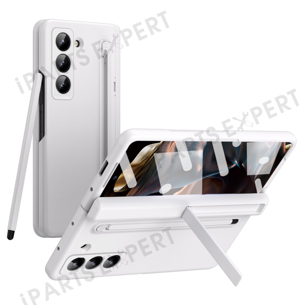 Kickstand Phone Case for Samsung Galaxy Z Fold Special / Z Fold 6 Slim / W25 PC Back Cover with Stylus and Tempered Glass Film - White