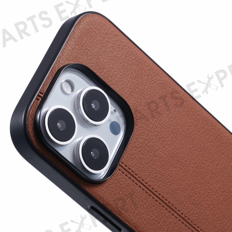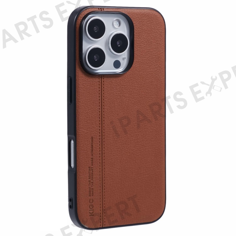 KIGC For iPhone 15 Pro Max Case Litchi Texture Leather Coated PC+TPU Phone Cover - Brown