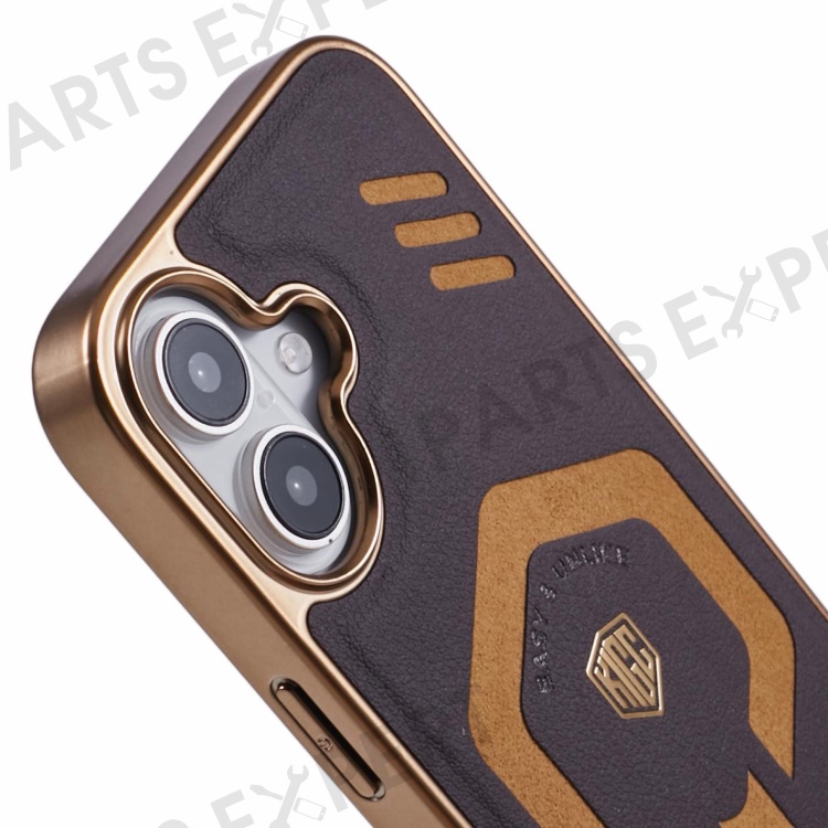 KIGC For iPhone 16 Case Compatible with MagSafe Leather+PC+TPU Phone Cover - Titanium Gold