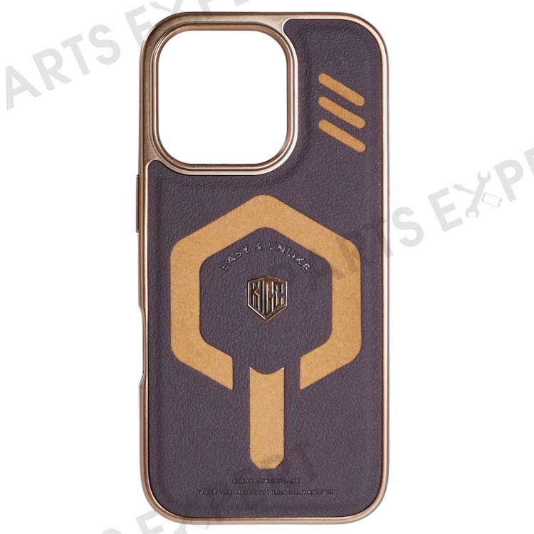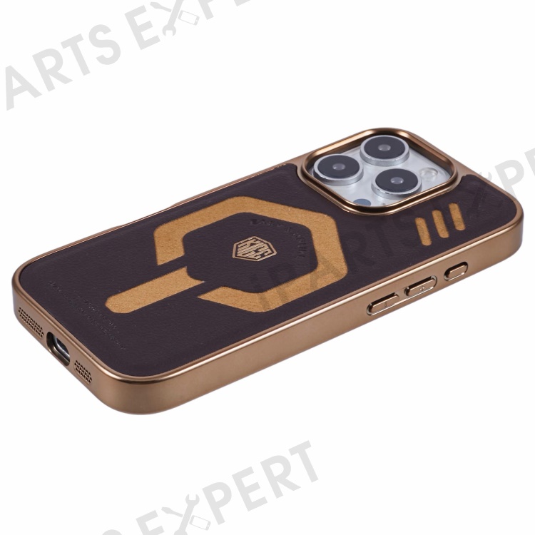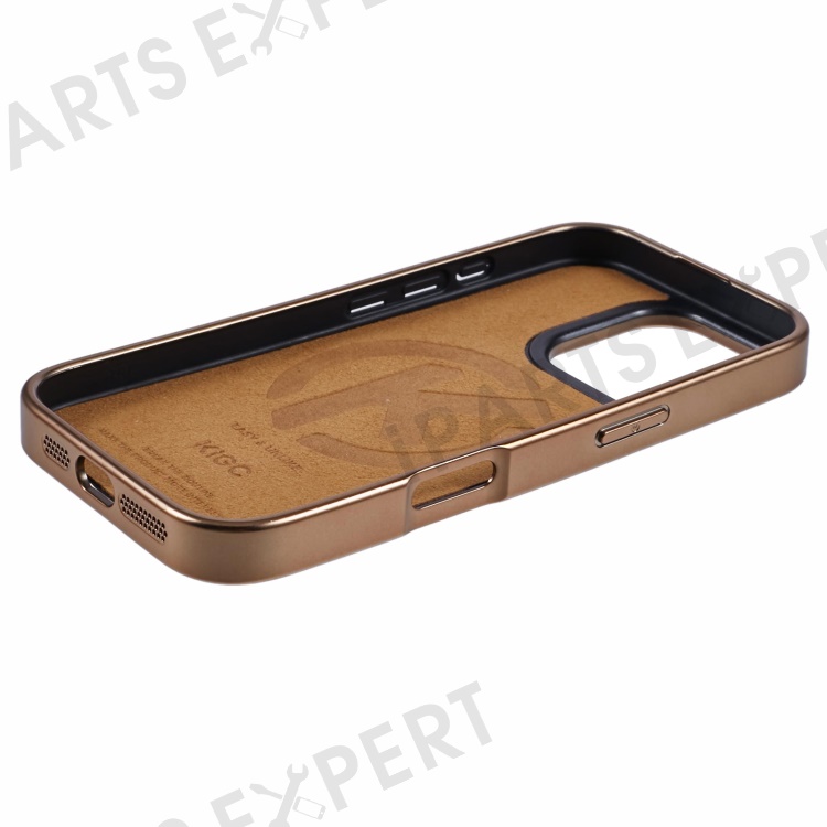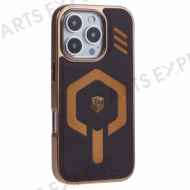 KIGC For iPhone 16 Pro Case Compatible with MagSafe Leather+PC+TPU Phone Cover - Titanium Gold