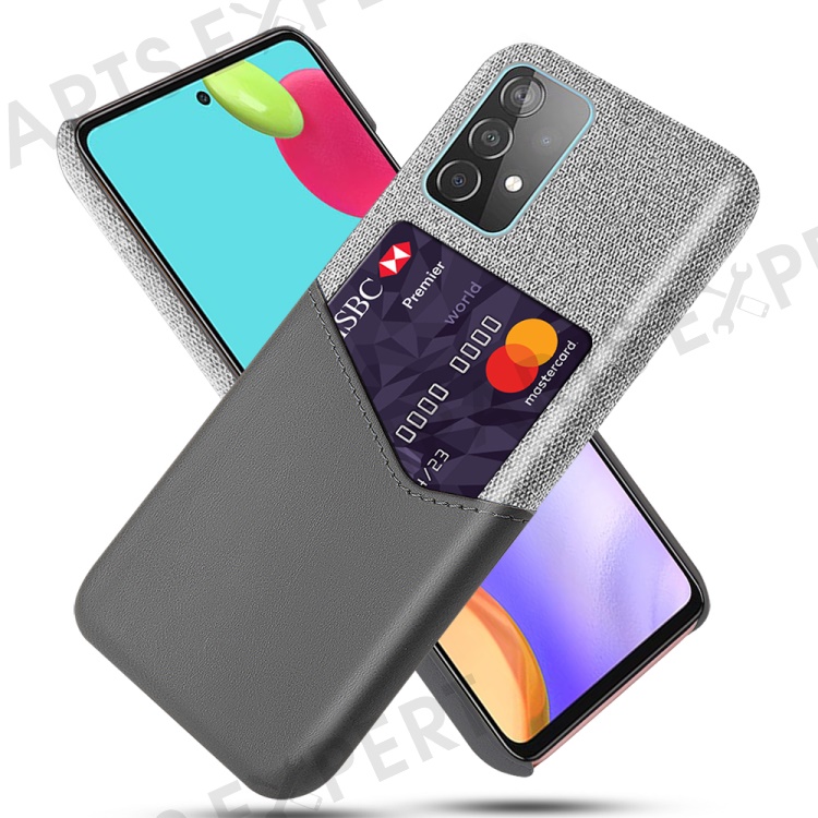 KSQ Card Holder Cloth + PU Leather Coated PC Back Cover for Samsung Galaxy A52 4G/5G / A52s 5G - Grey