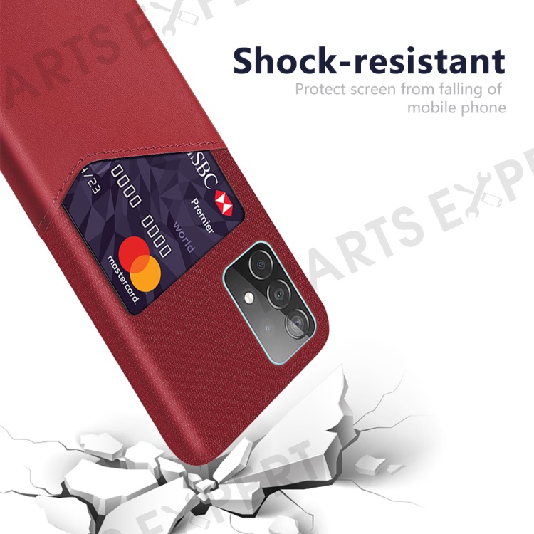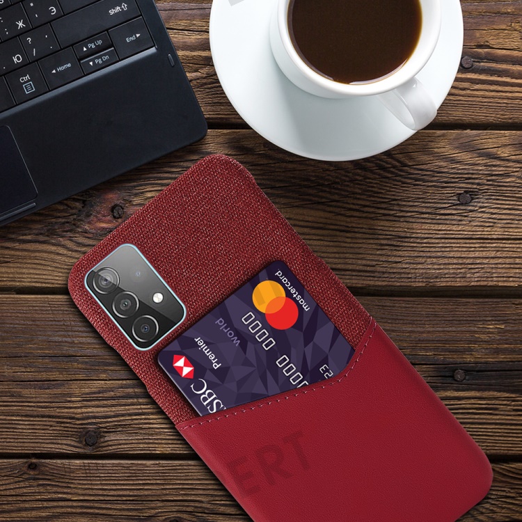 KSQ Card Holder Cloth + PU Leather Coated PC Back Cover for Samsung Galaxy A52 4G/5G / A52s 5G - Red