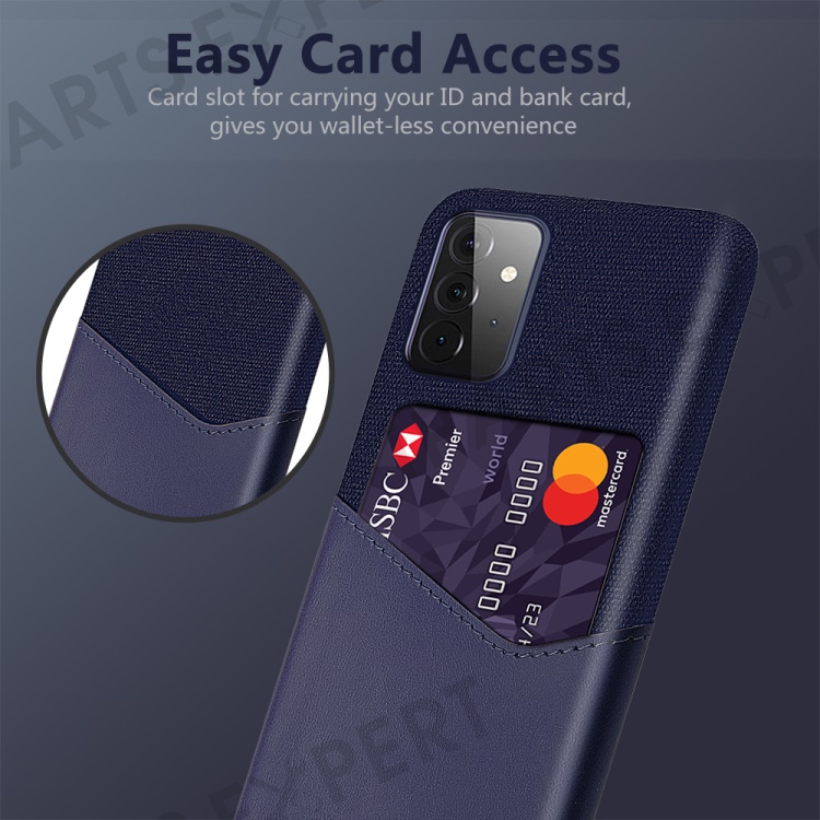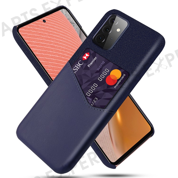 KSQ Card Holder Cloth + PU Leather Coated PC Back Cover for Samsung Galaxy A72 5G / A72 4G - Blue