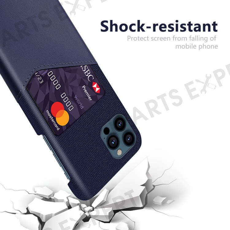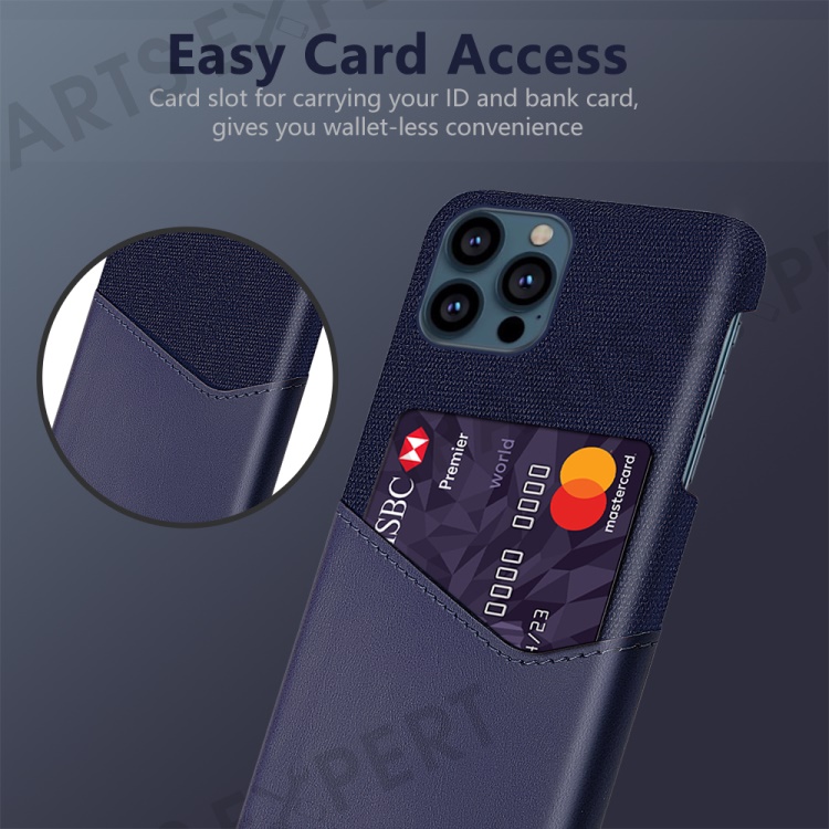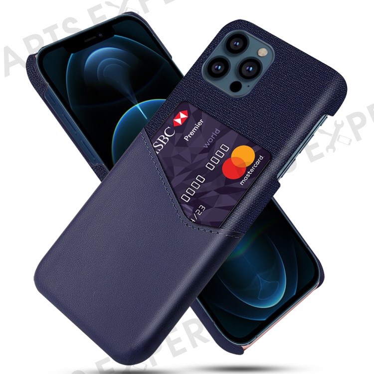KSQ Cloth + PU Leather Coated PC Phone Case with Card Slot for iPhone 13 Pro Max 6.7 inch - Blue
