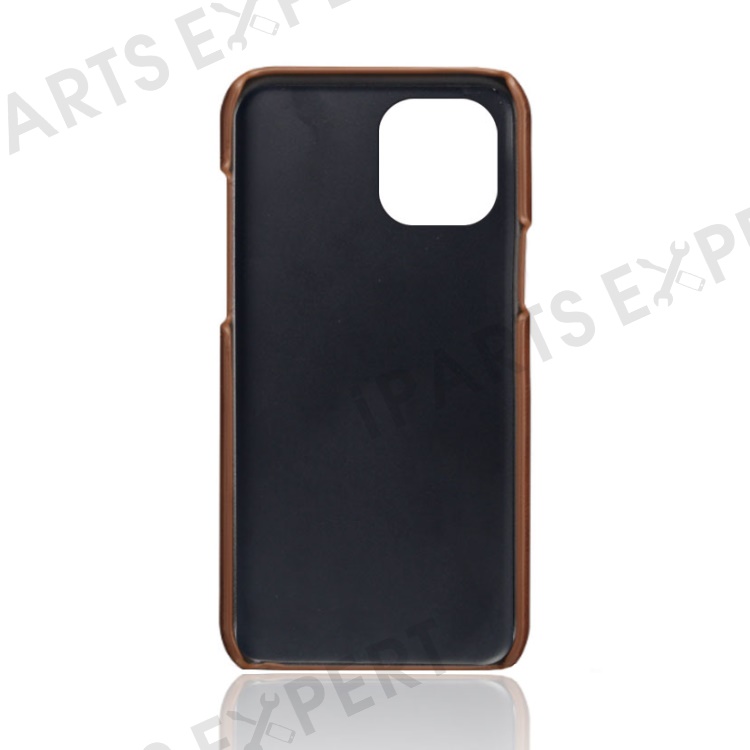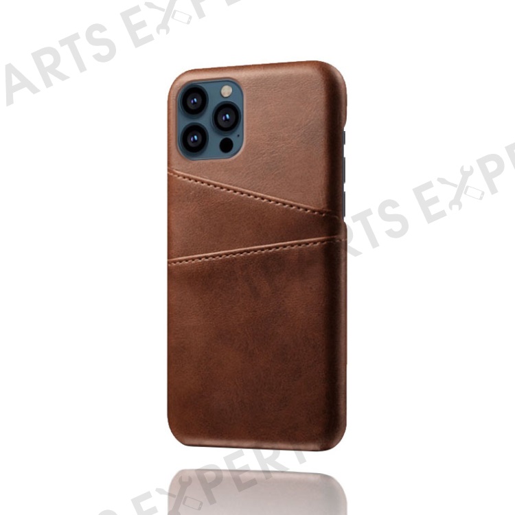 KSQ Dual Card Slots PU Leather Coated PC Phone Case Shell for iPhone 13 Pro Max 6.7 inch - Brown