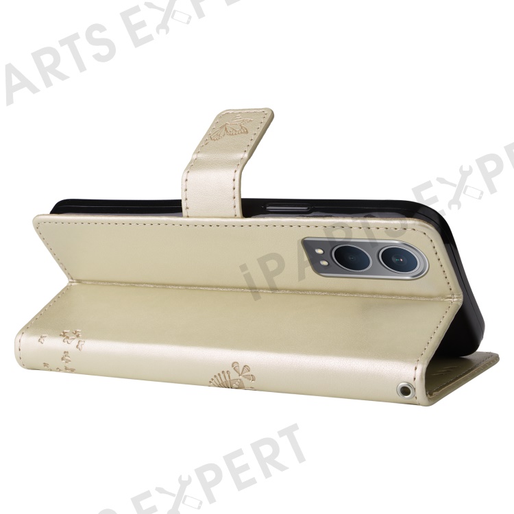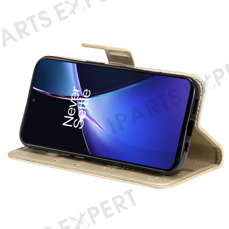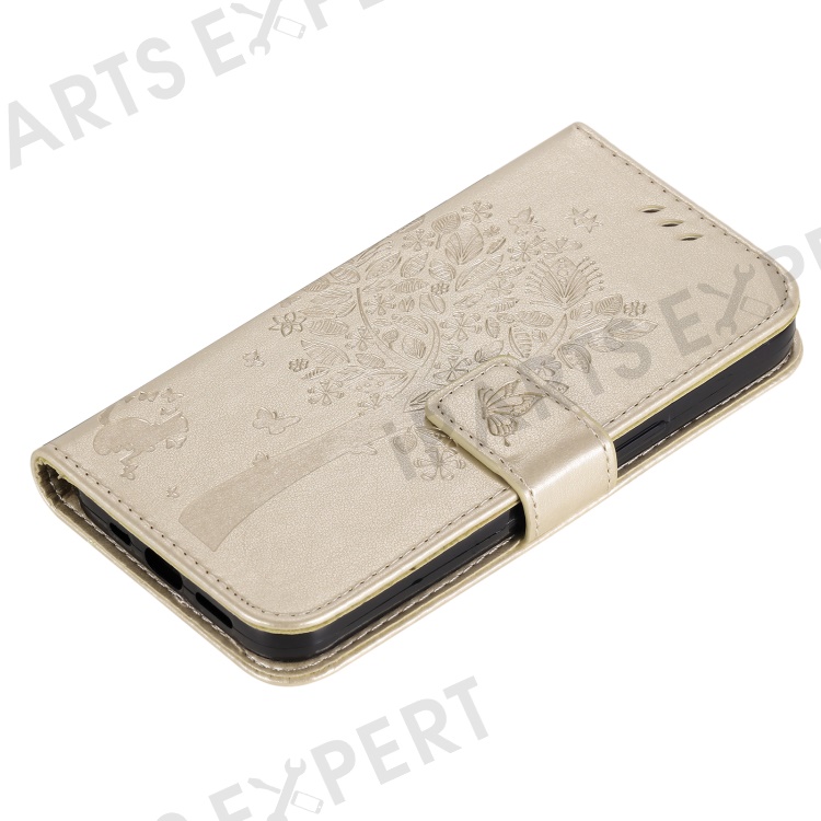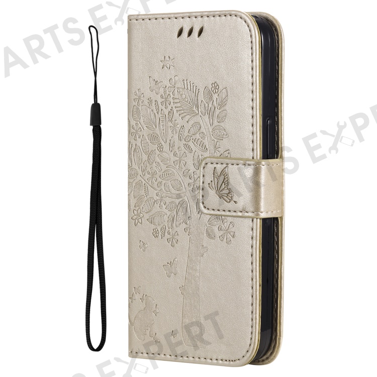 For OnePlus Nord CE4 Lite 5G / Oppo K12x 5G (China) Phone Case with Stand Cat Tree Pattern Leather Wallet Mobile Cover - Gold