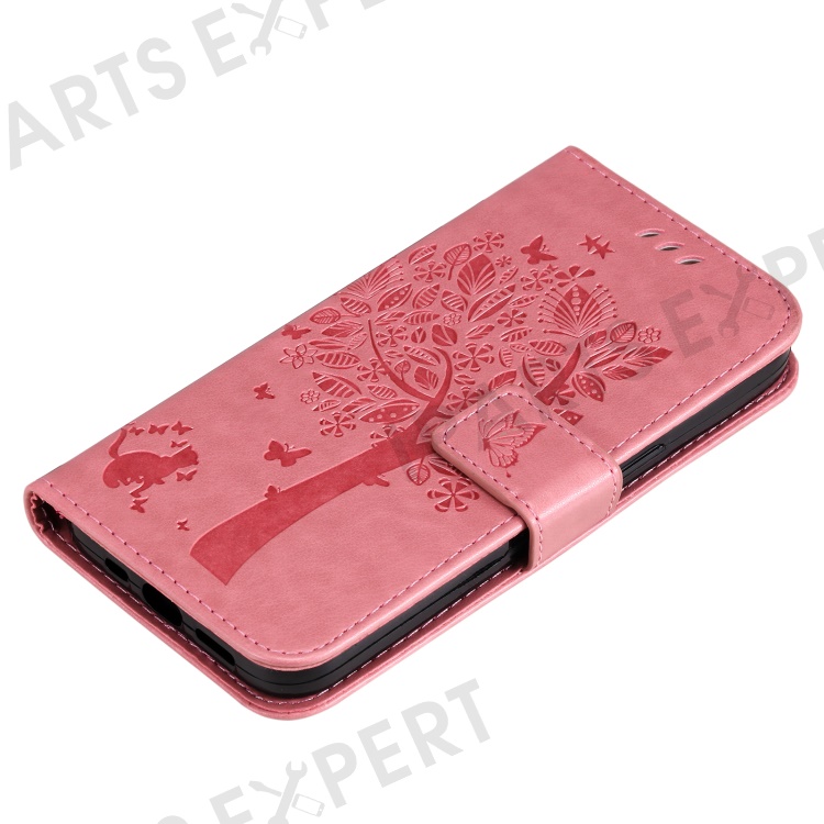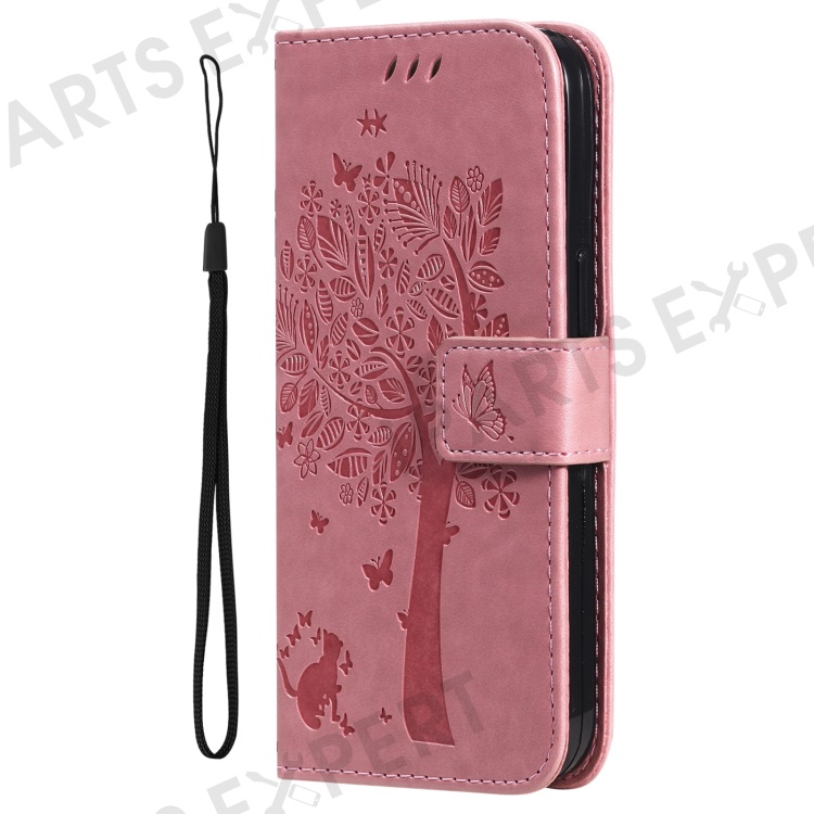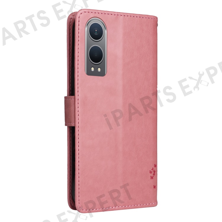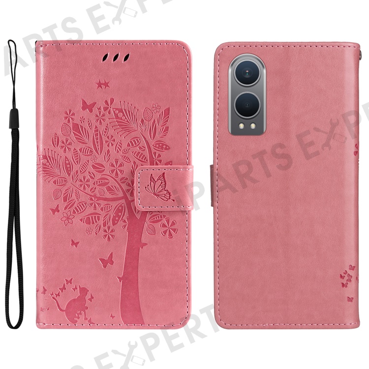 For OnePlus Nord CE4 Lite 5G / Oppo K12x 5G (China) Phone Case with Stand Cat Tree Pattern Leather Wallet Mobile Cover - Pink