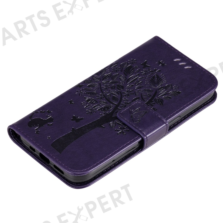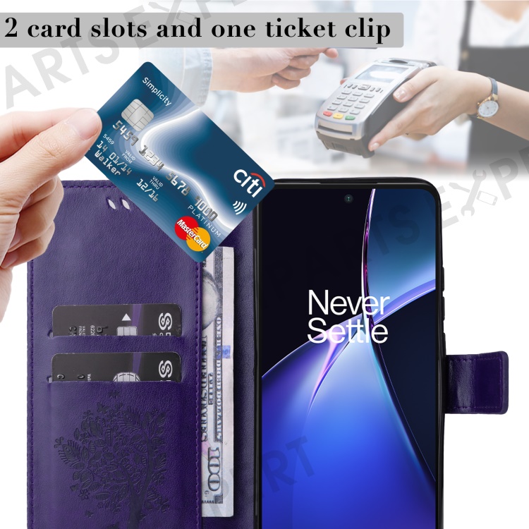For OnePlus Nord CE4 Lite 5G / Oppo K12x 5G (China) Phone Case with Stand Cat Tree Pattern Leather Wallet Mobile Cover - Purple