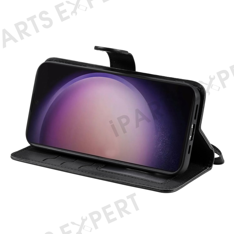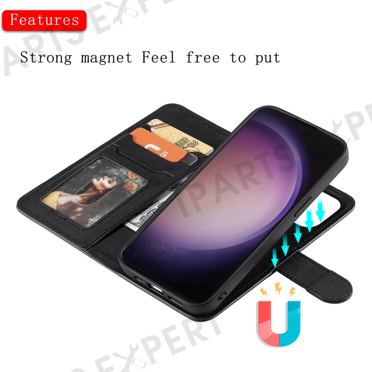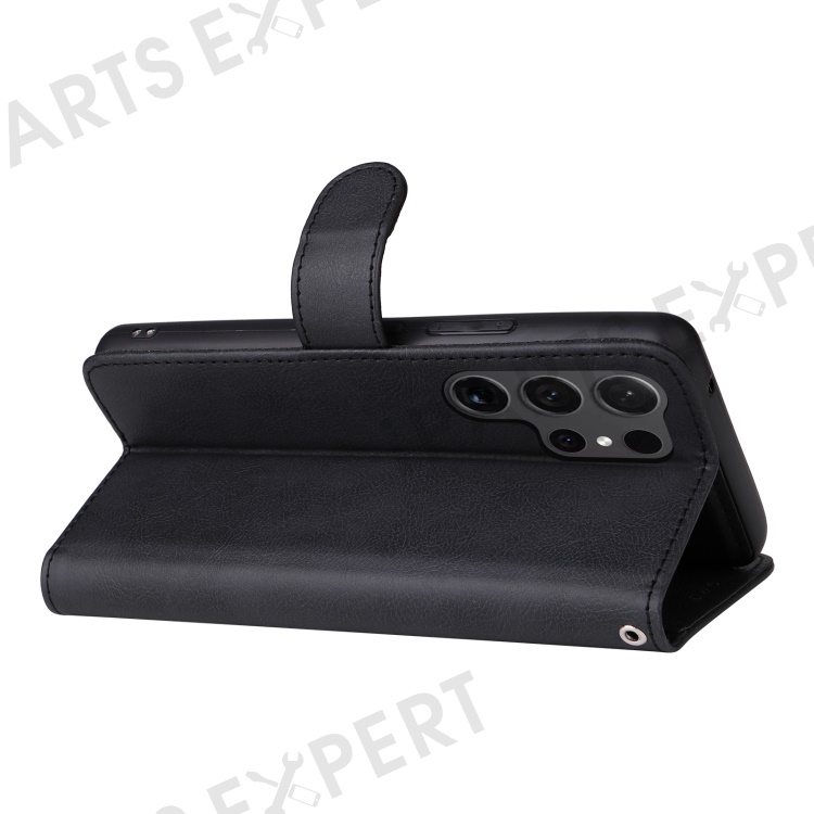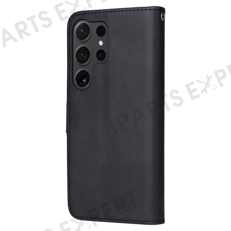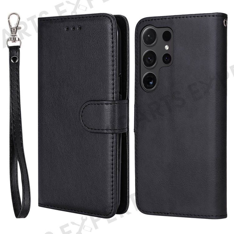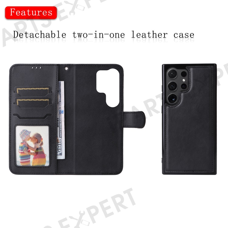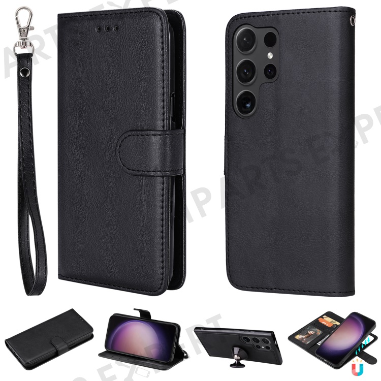 For Samsung Galaxy S24 Ultra Case 2 in 1 Detachable Magnetic Leather Wallet Mobile Cover with Strap - Black