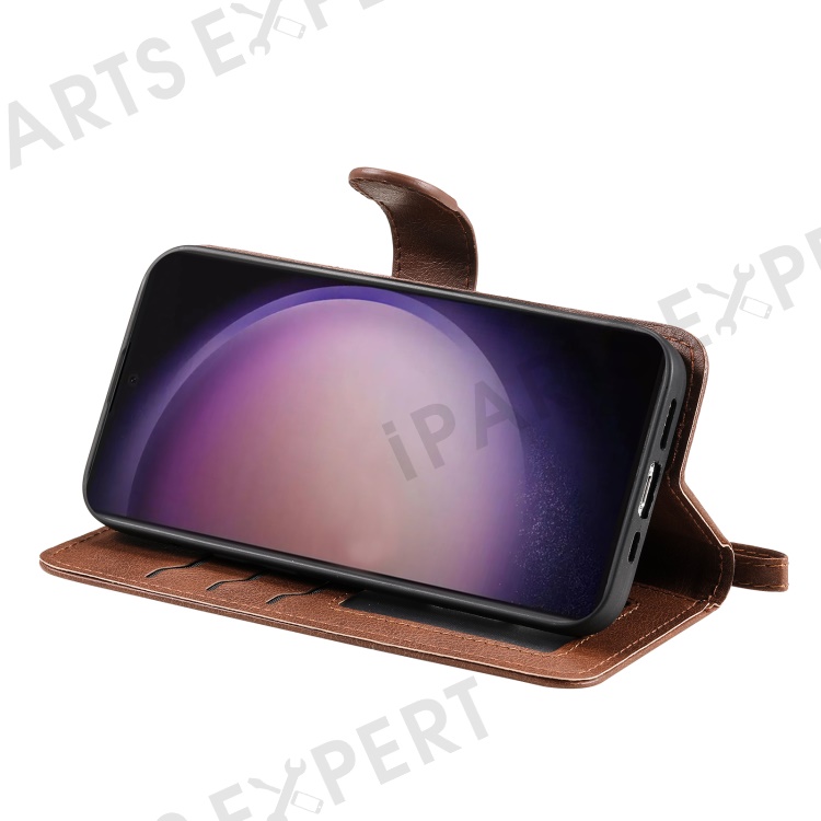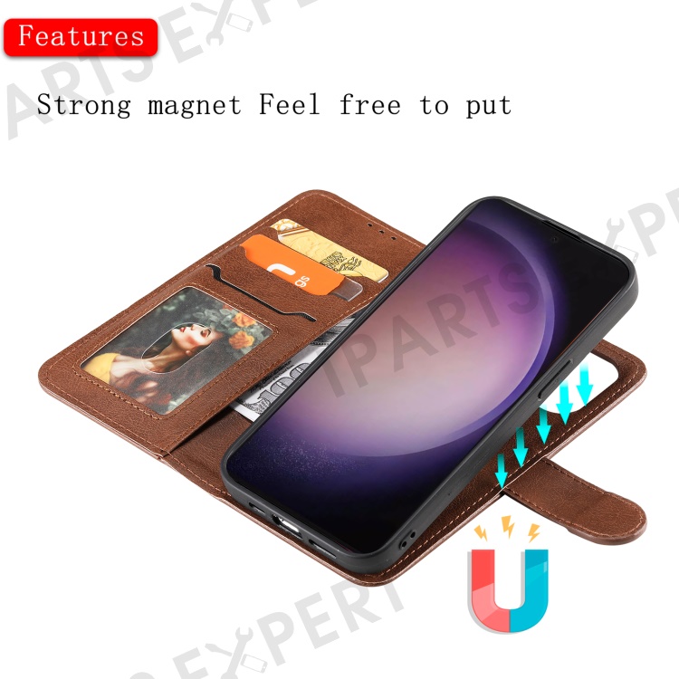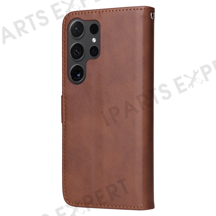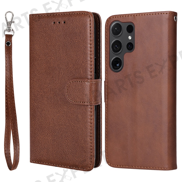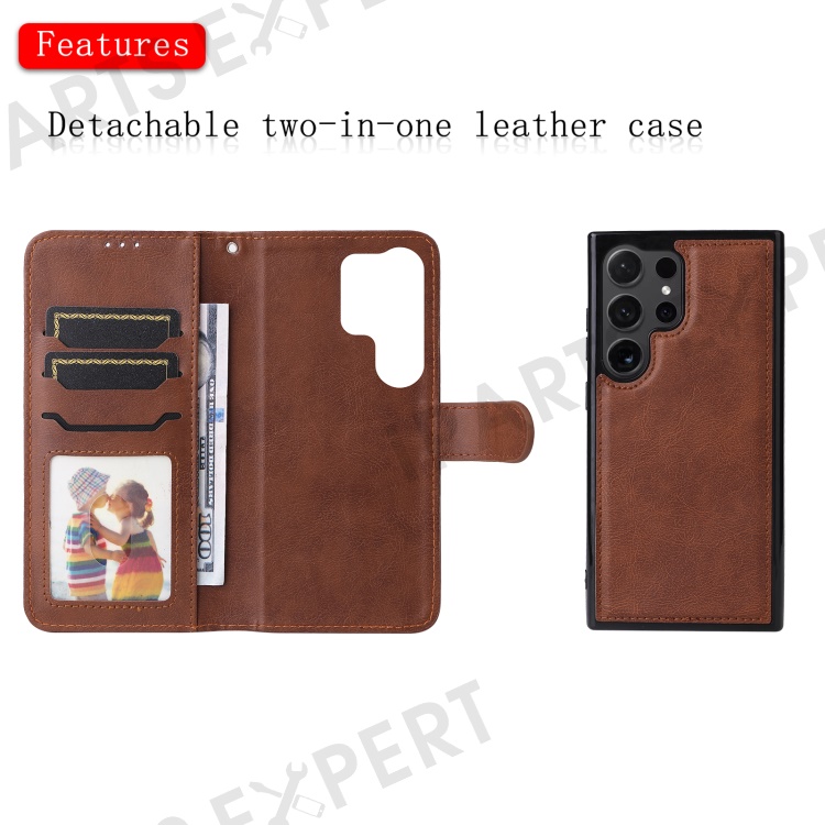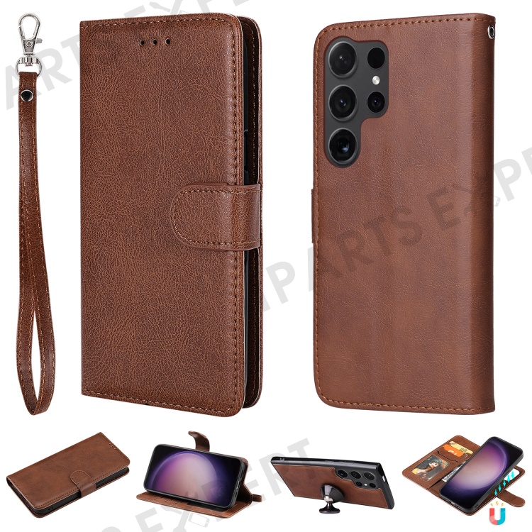 For Samsung Galaxy S24 Ultra Case 2 in 1 Detachable Magnetic Leather Wallet Mobile Cover with Strap - Brown