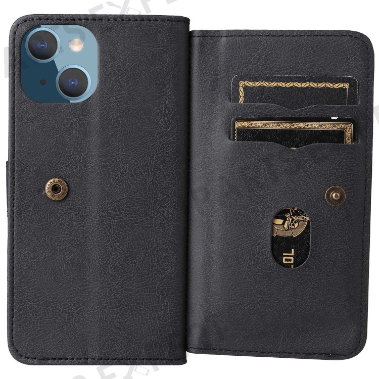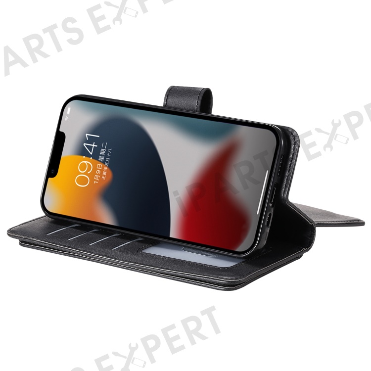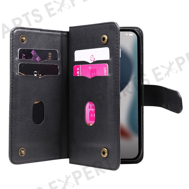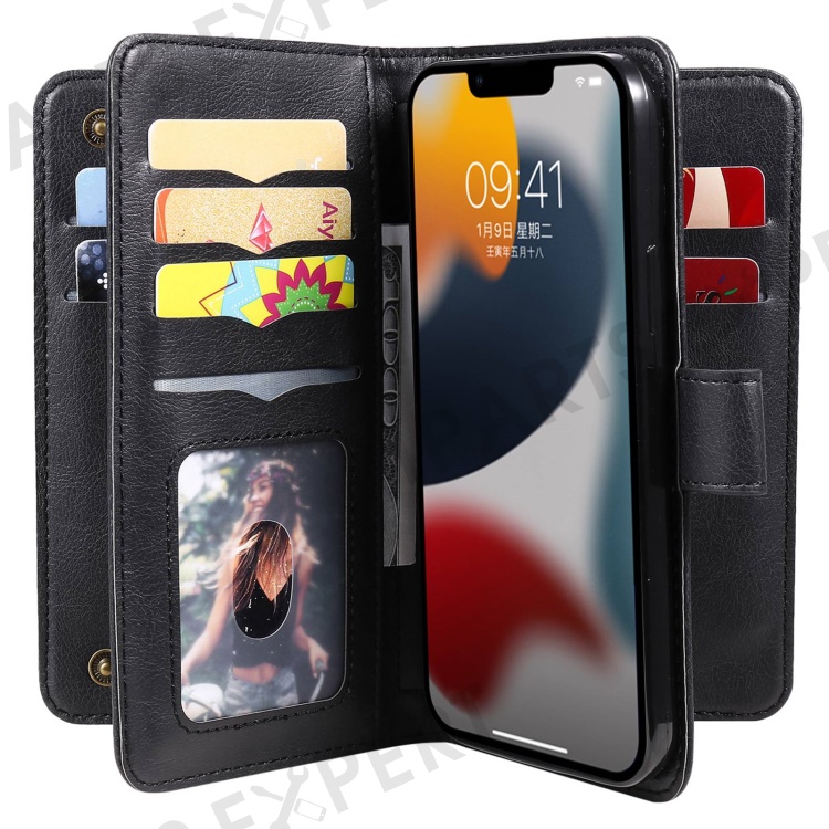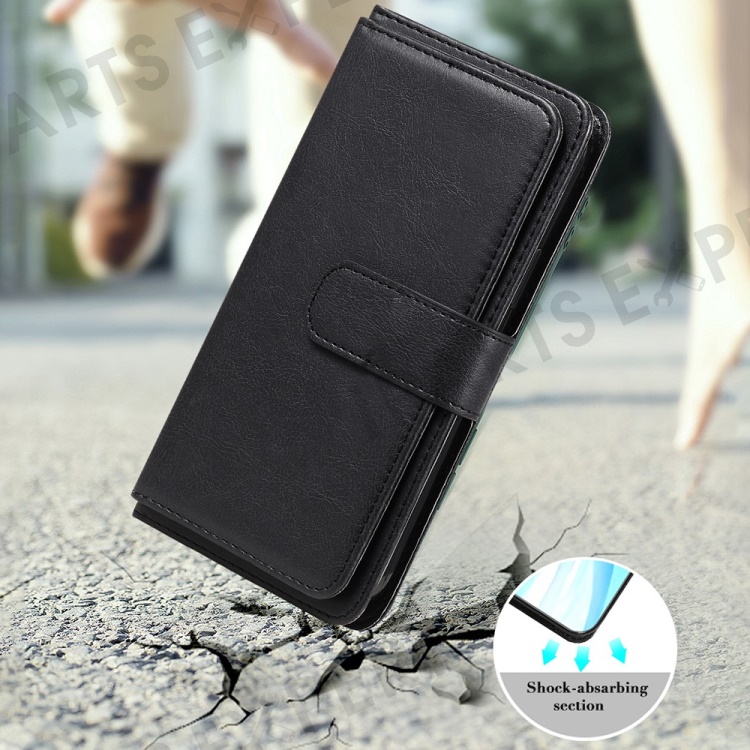 KT Multi-functional Series-1 for iPhone 14 6.1 inch Shockproof Flip Wallet Case PU Leather Magnetic Phone Cover Stand with 10 Card Slots - Black