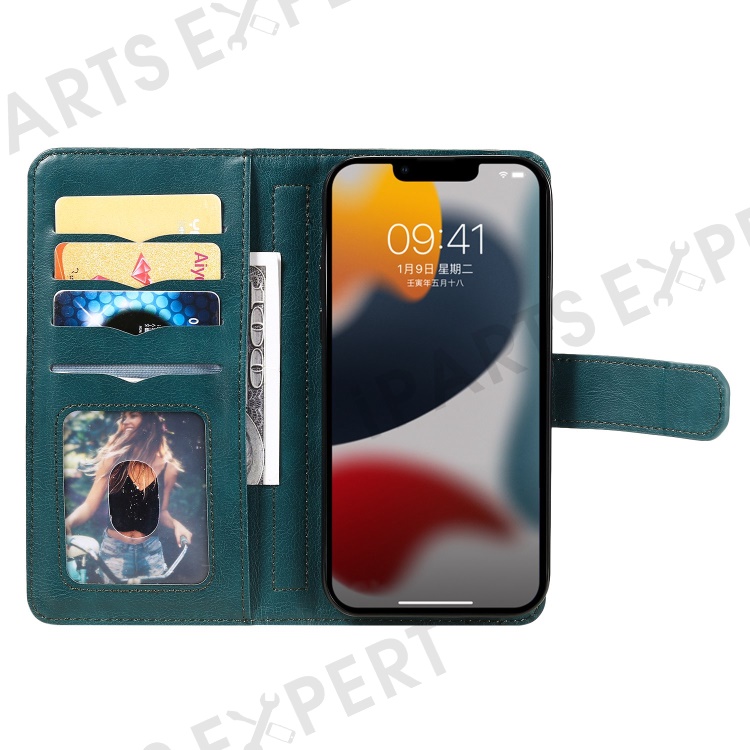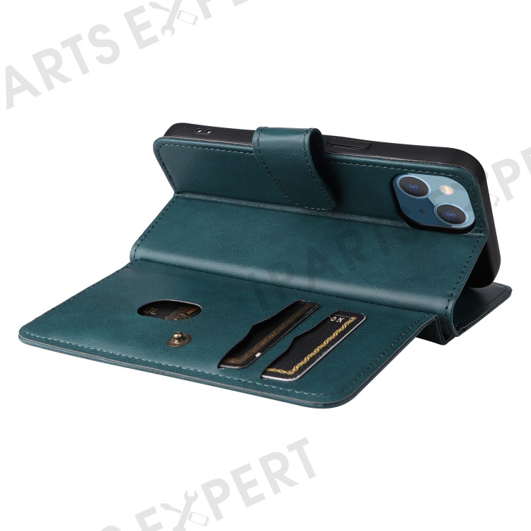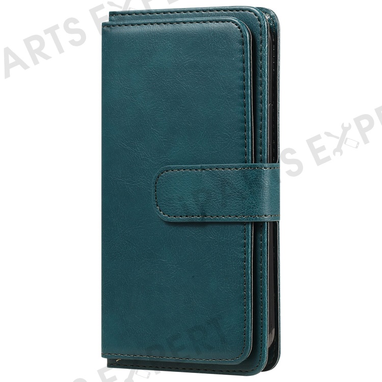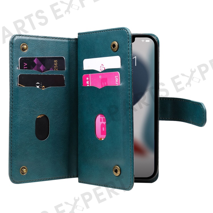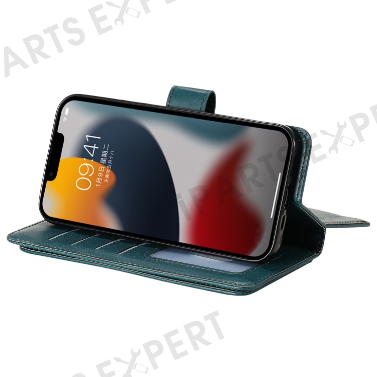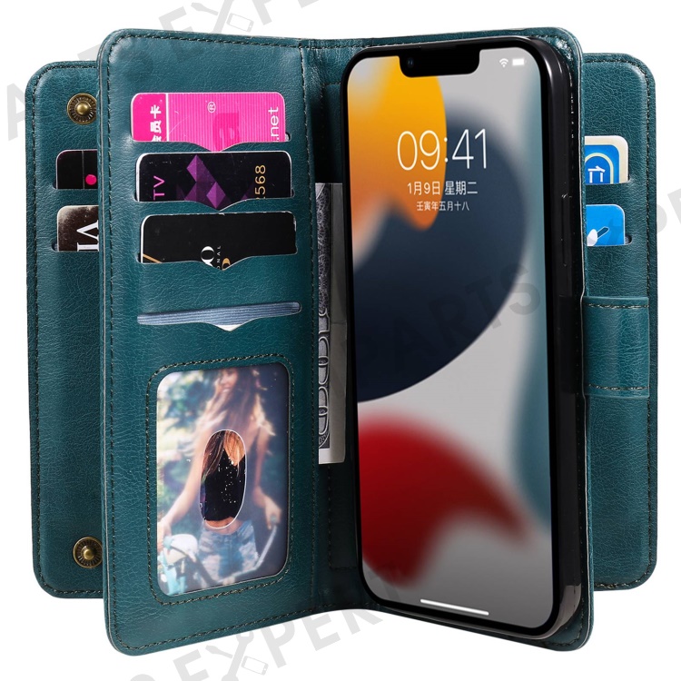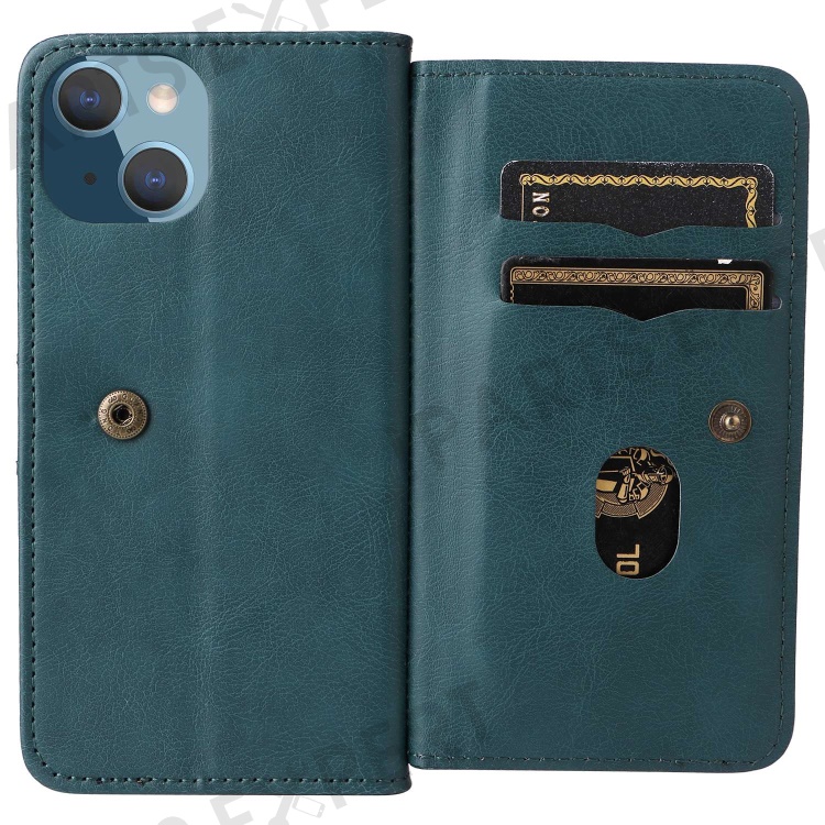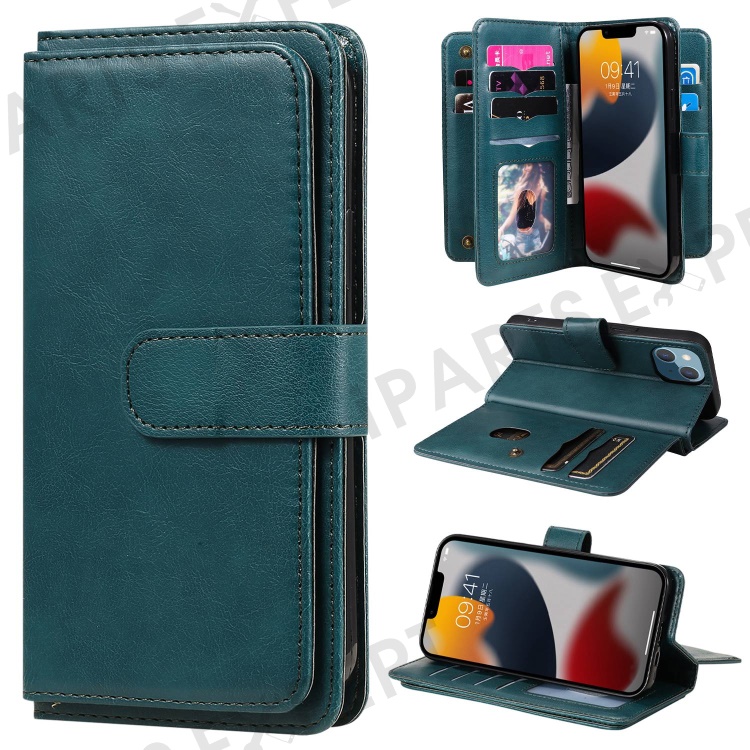 KT Multi-functional Series-1 for iPhone 14 6.1 inch Shockproof Flip Wallet Case PU Leather Magnetic Phone Cover Stand with 10 Card Slots - Blackish Green