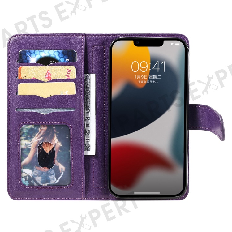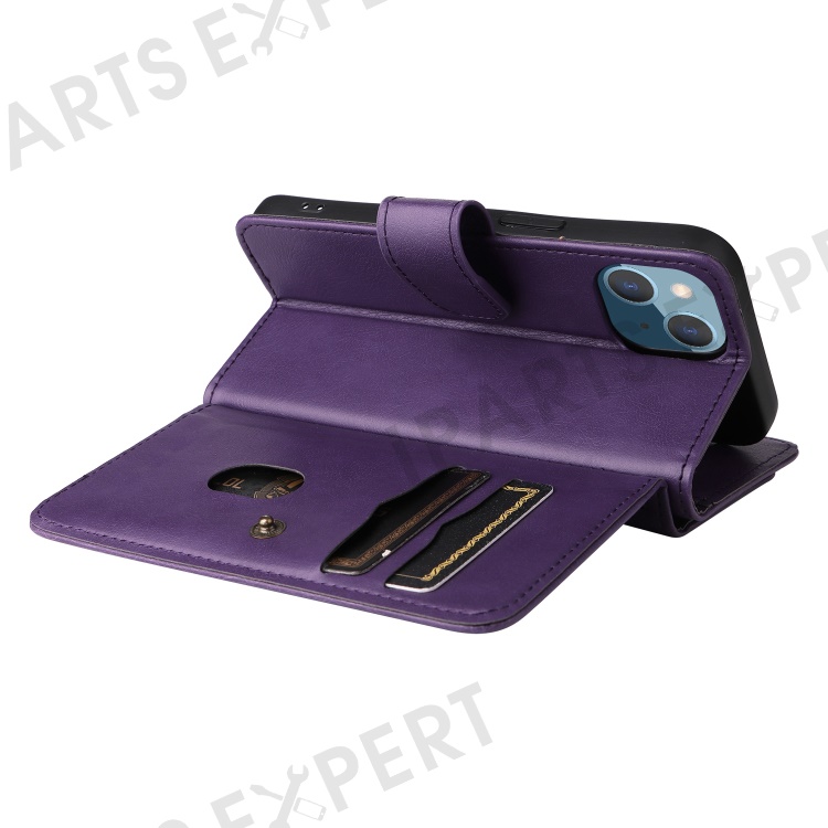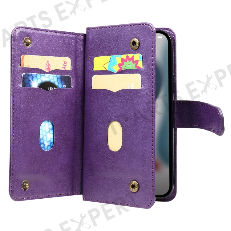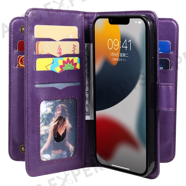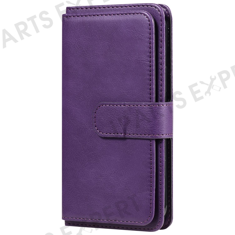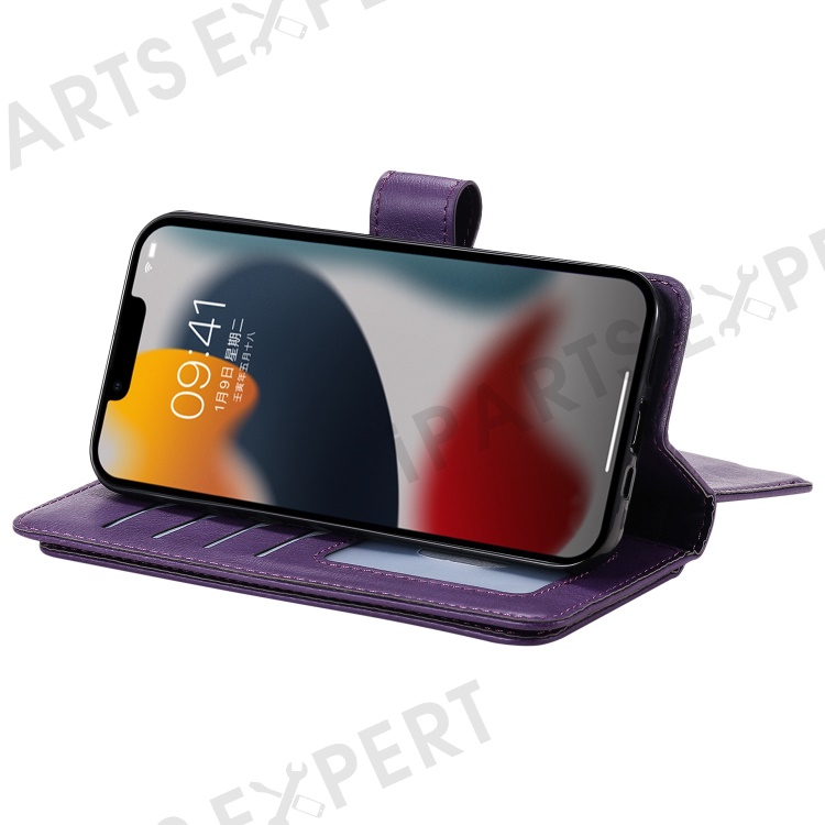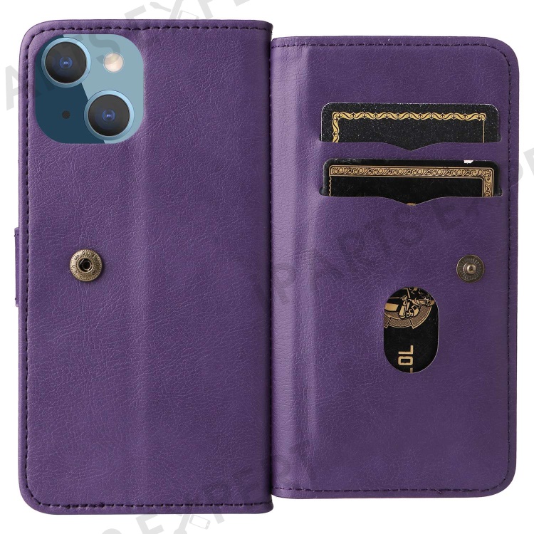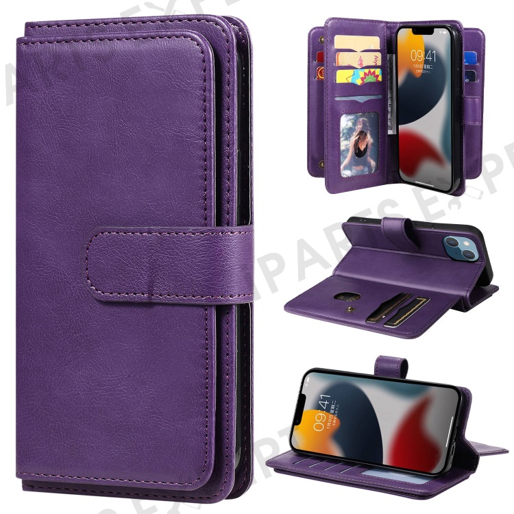 KT Multi-functional Series-1 for iPhone 14 6.1 inch Shockproof Flip Wallet Case PU Leather Magnetic Phone Cover Stand with 10 Card Slots - Purple