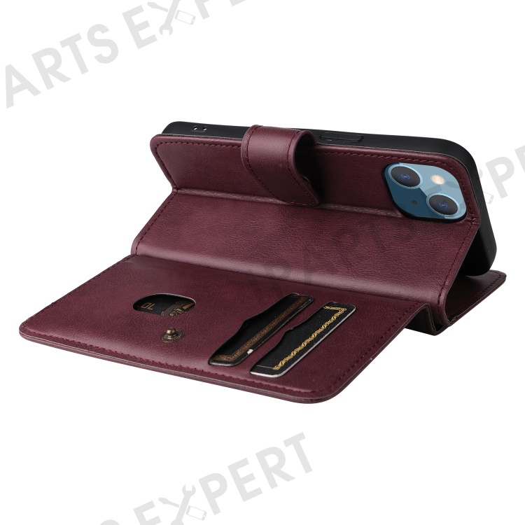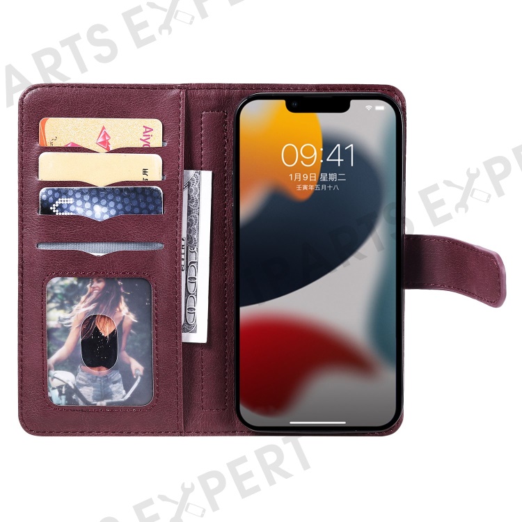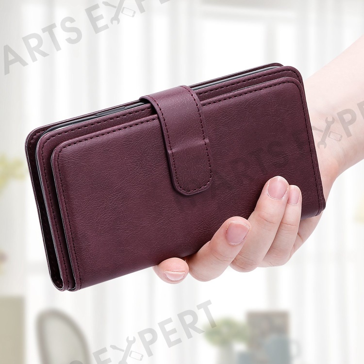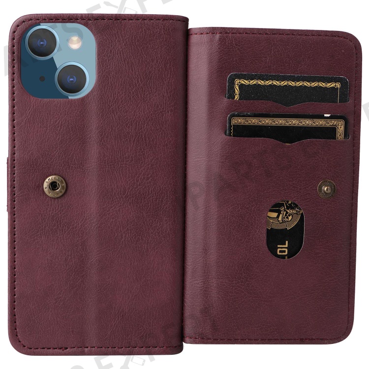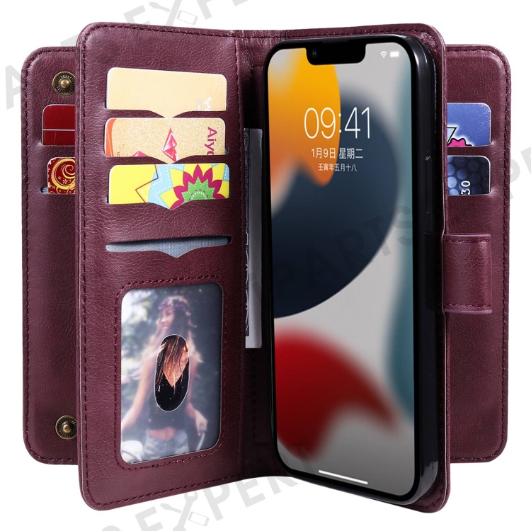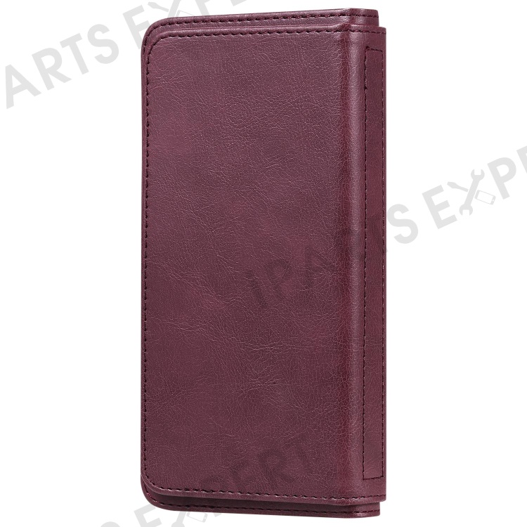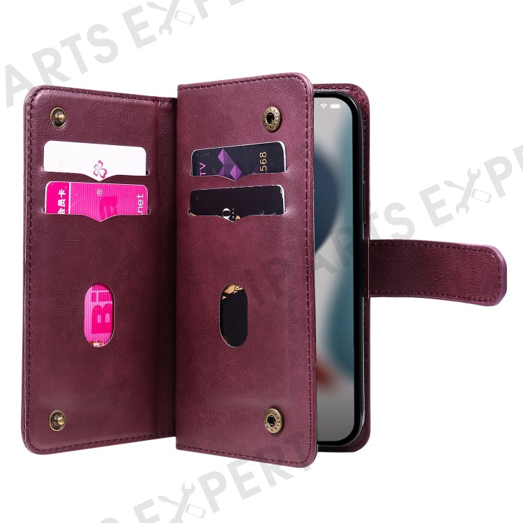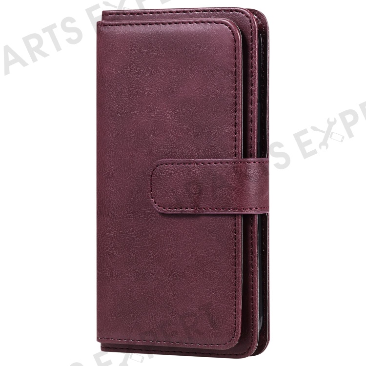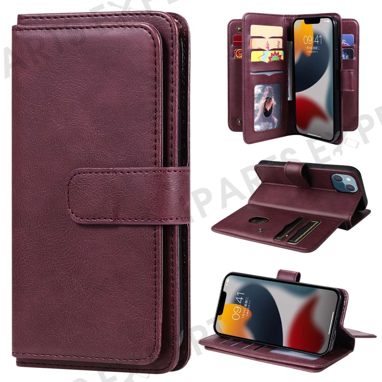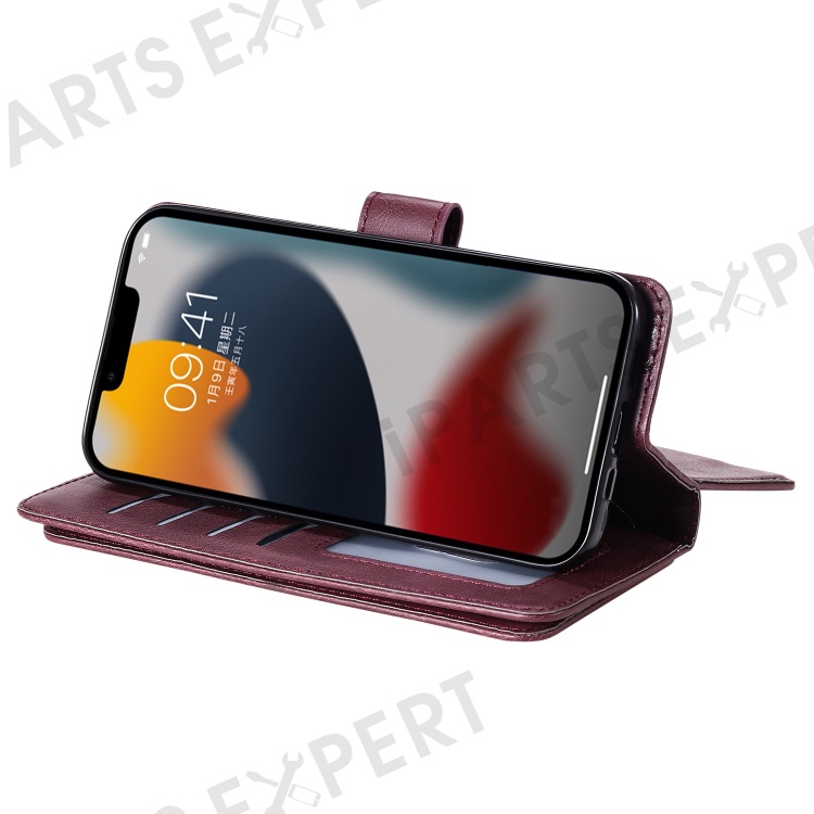 KT Multi-functional Series-1 for iPhone 14 6.1 inch Shockproof Flip Wallet Case PU Leather Magnetic Phone Cover Stand with 10 Card Slots - Wine Red