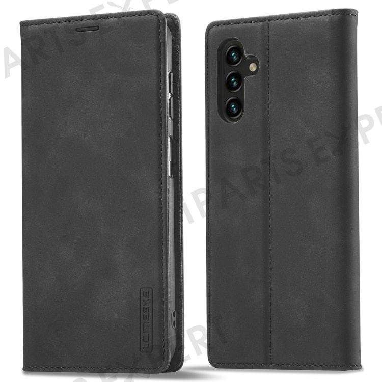 LC.IMEEKE For Samsung Galaxy A55 5G Wallet Case Microfiber Leather Phone Cover - Black