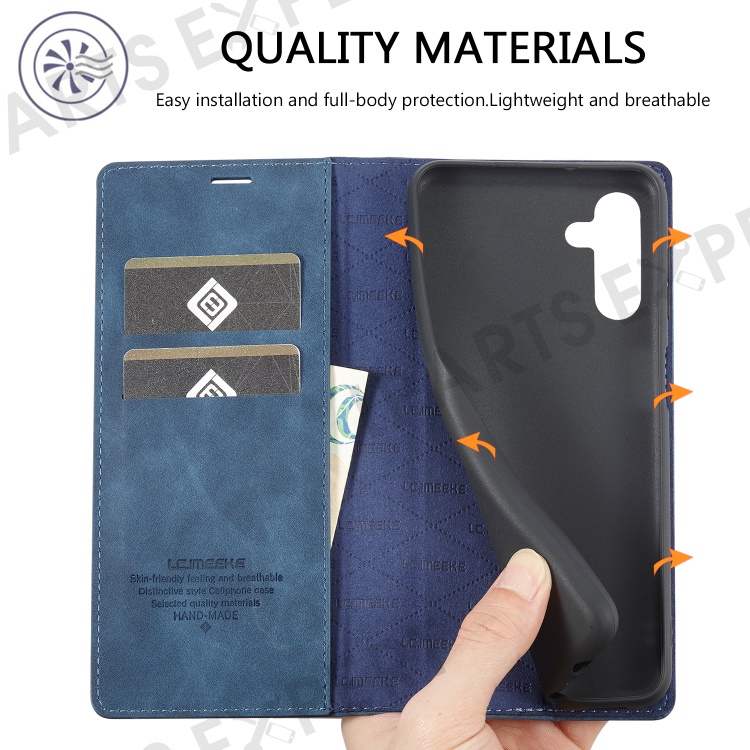 LC.IMEEKE For Samsung Galaxy A55 5G Wallet Case Microfiber Leather Phone Cover - Blue