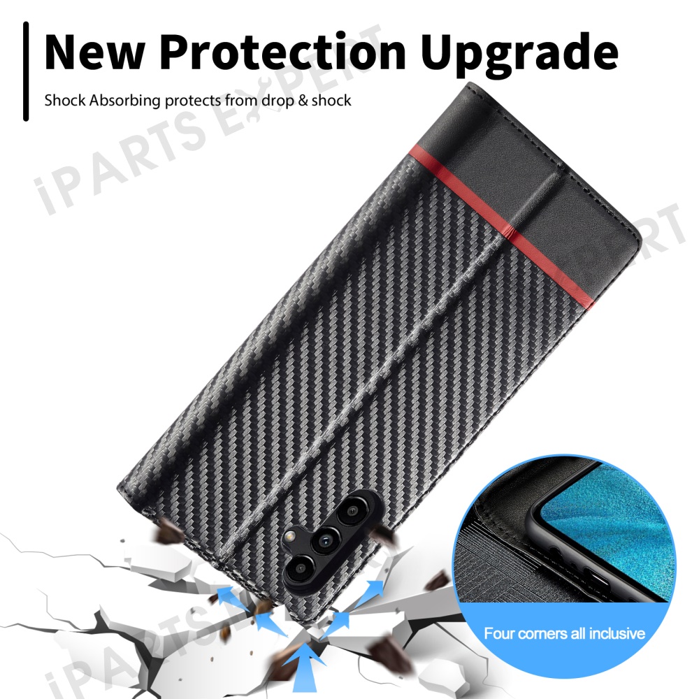 LC.IMEEKE For Samsung Galaxy A56 5G Case Carbon Fiber Texture Phone Cover Stand Card Holder - Horizontal Stripe