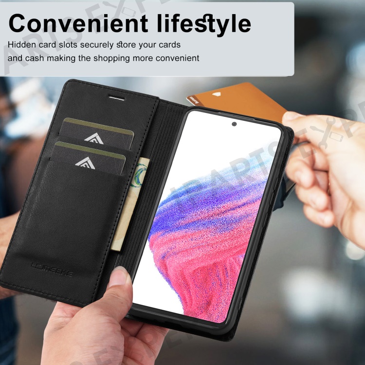 LC.IMEEKE For Samsung Galaxy S24+ Leather Case RFID Blocking Card Slots Phone Cover - Black