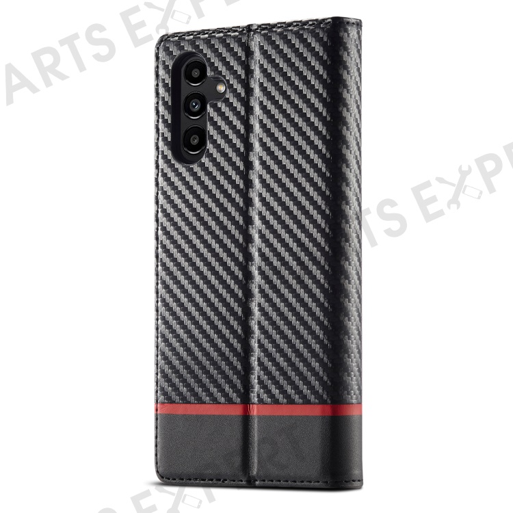 LC.IMEEKE For Samsung Galaxy S25+ Case Carbon Fiber Texture Phone Cover Stand Card Holder - Horizontal Stripe