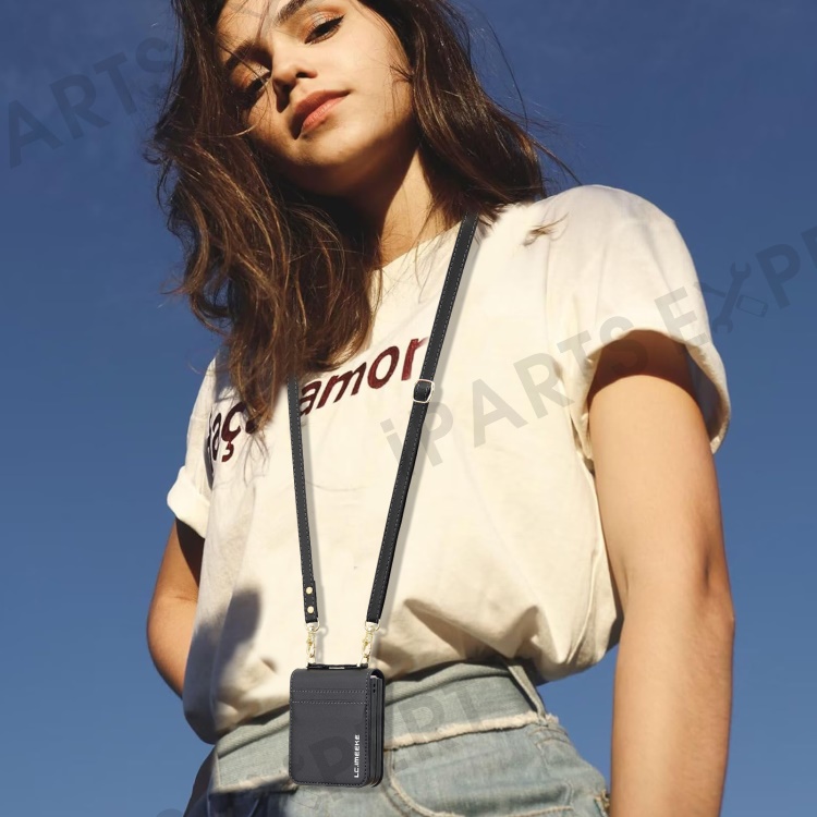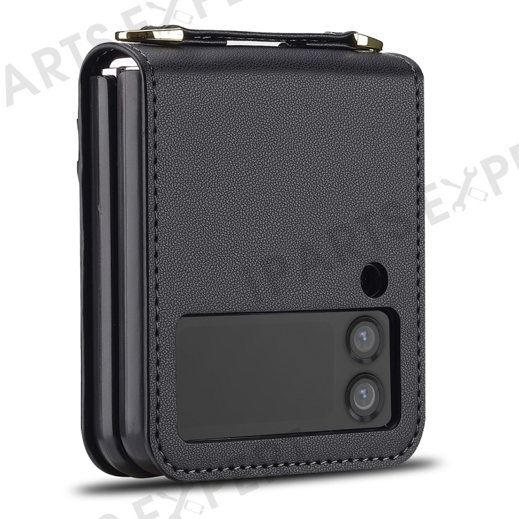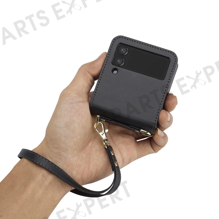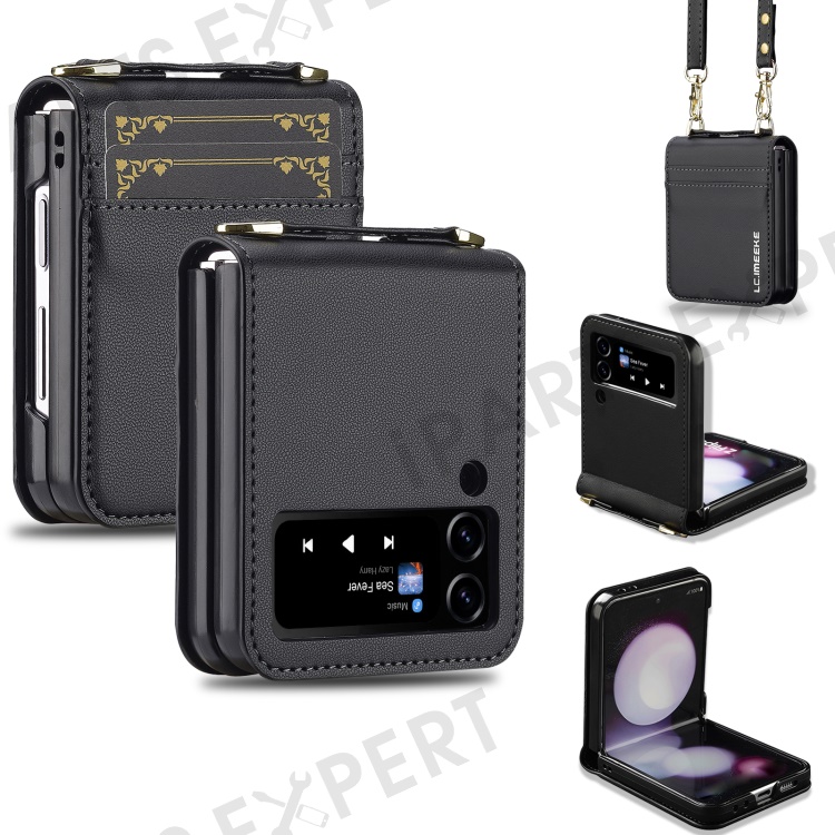 LC.IMEEKE for Samsung Galaxy Z Flip4 5G Case Leather+PC Phone Cover with Straps Card Slots - Black