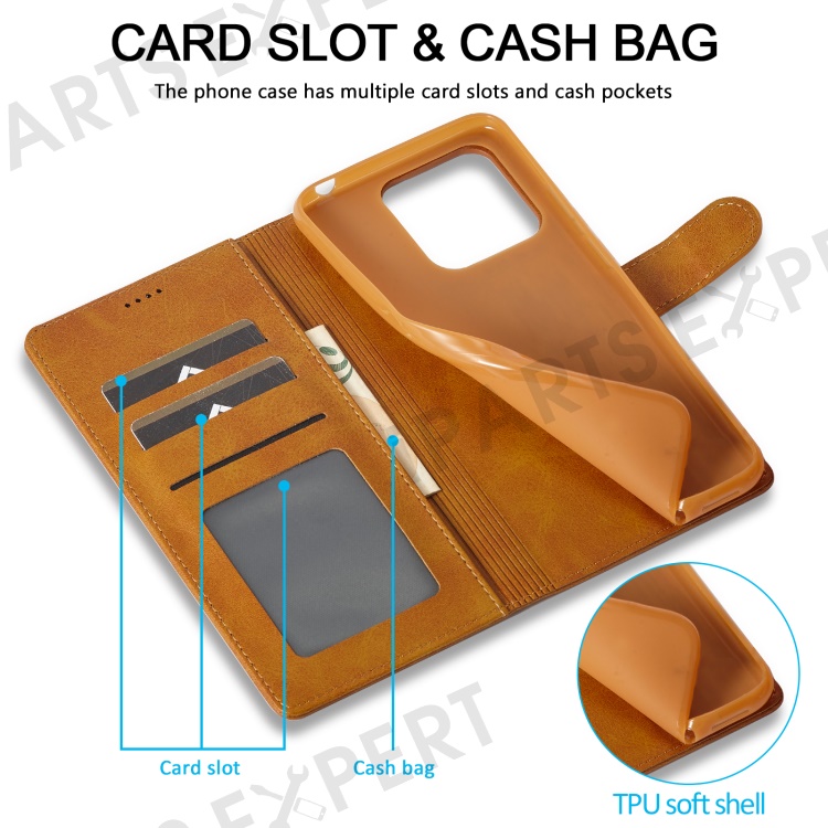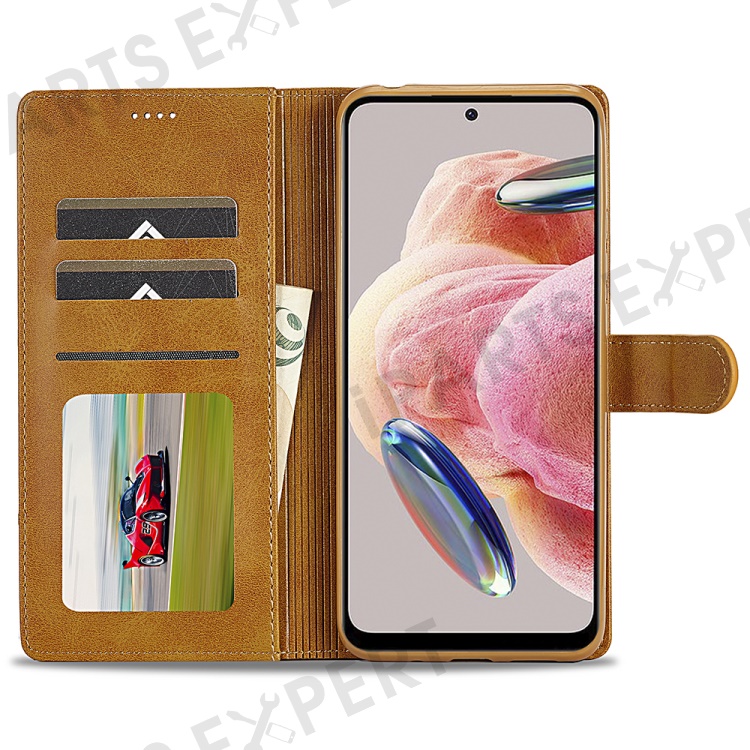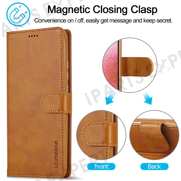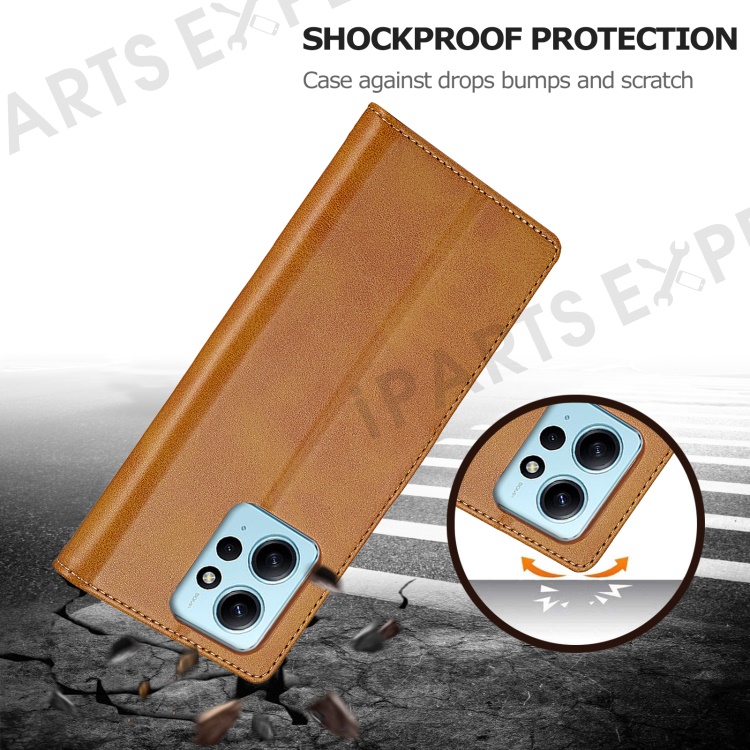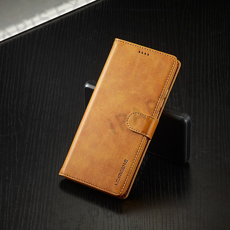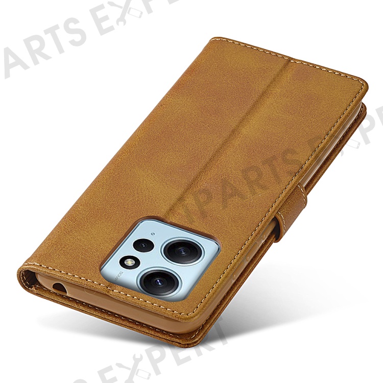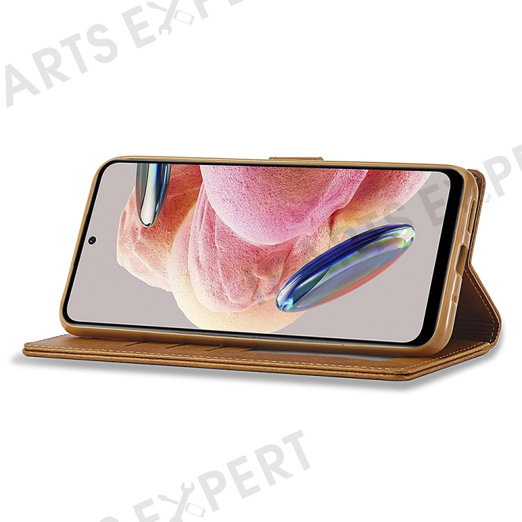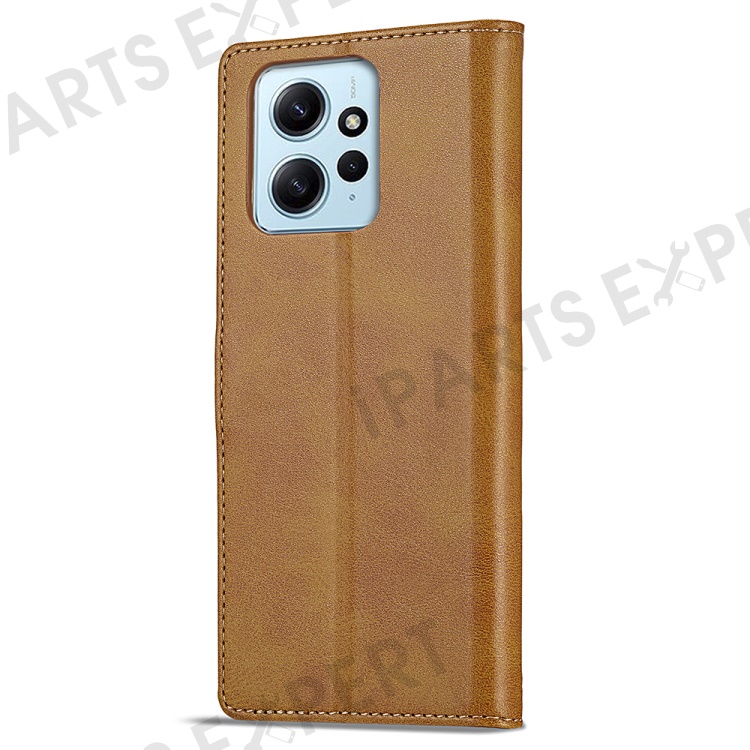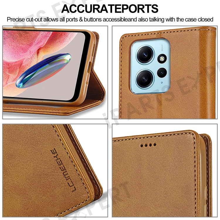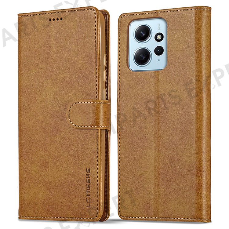 LC.IMEEKE For Xiaomi Redmi Note 12 4G Phone Wallet Case Calf Texture PU Leather Stand Phone Cover - Light Brown