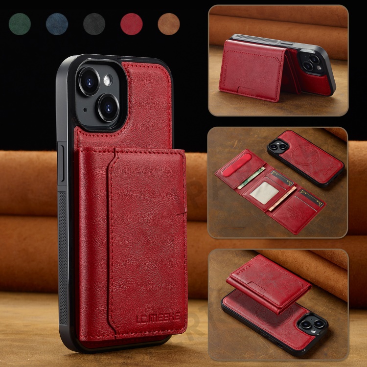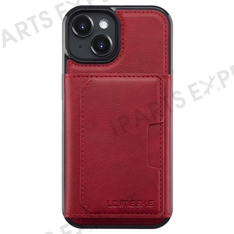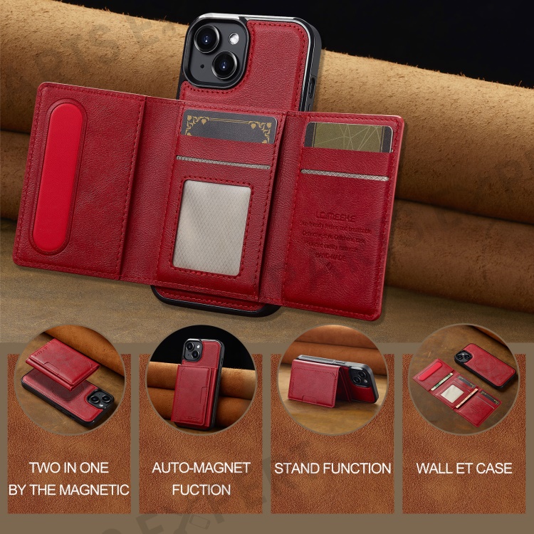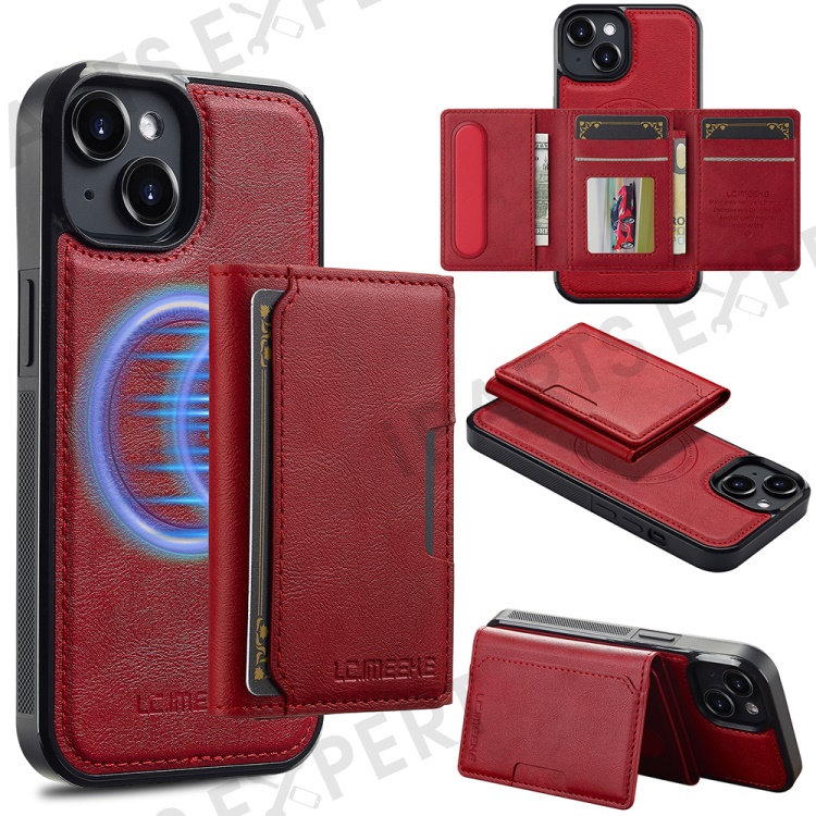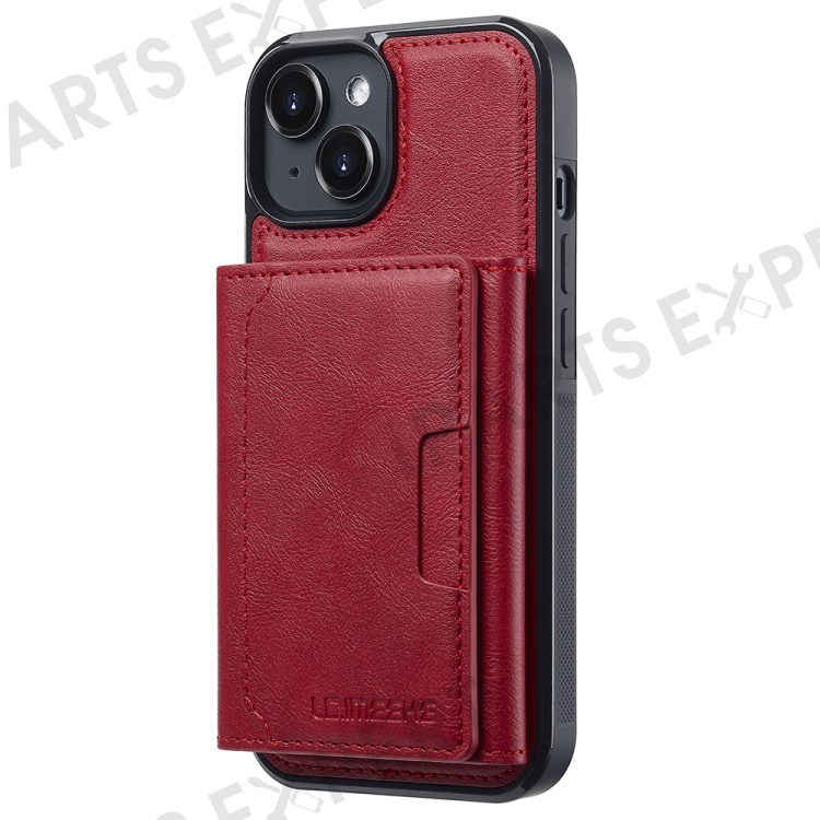 LC.IMEEKE L5 For iPhone 14 Magnetic Phone Case Leather Back Cover with Detachable Card Holder - Red