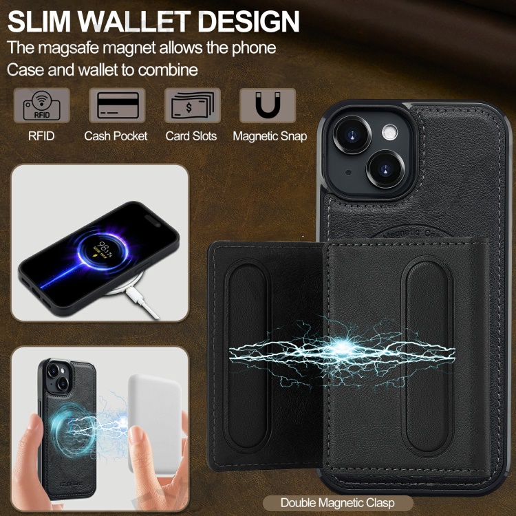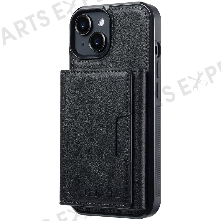 LC.IMEEKE L5 For iPhone 15 Plus Magnetic Phone Case Leather Back Cover with Detachable Card Holder - Black