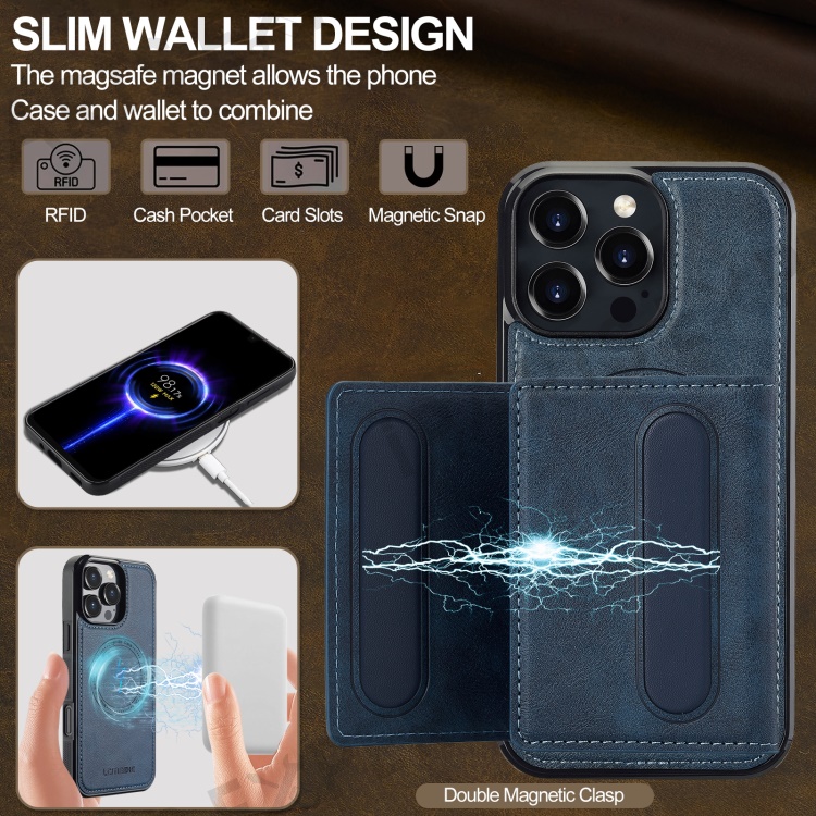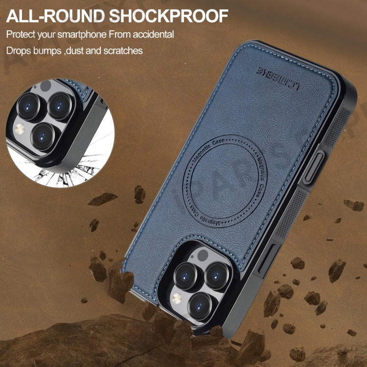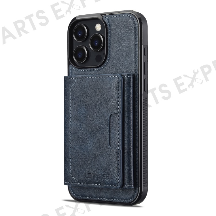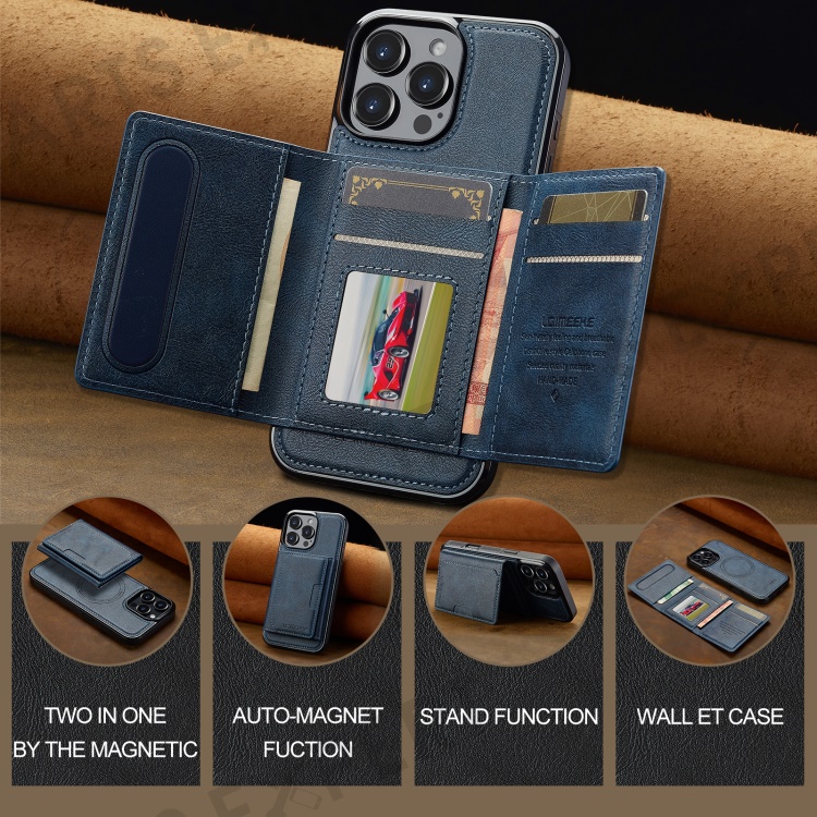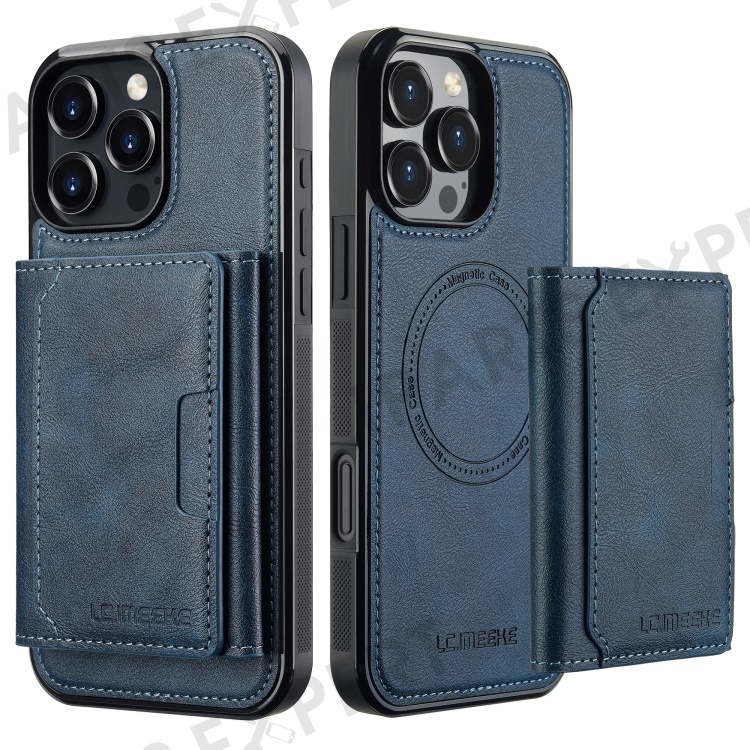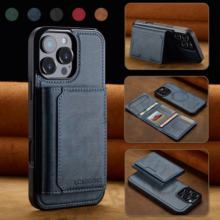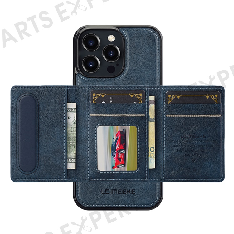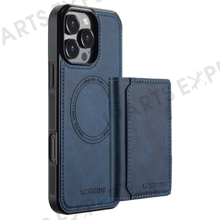 LC.IMEEKE L5 For iPhone 16 Pro Magnetic Phone Case Leather Back Cover with Detachable Card Holder - Blue