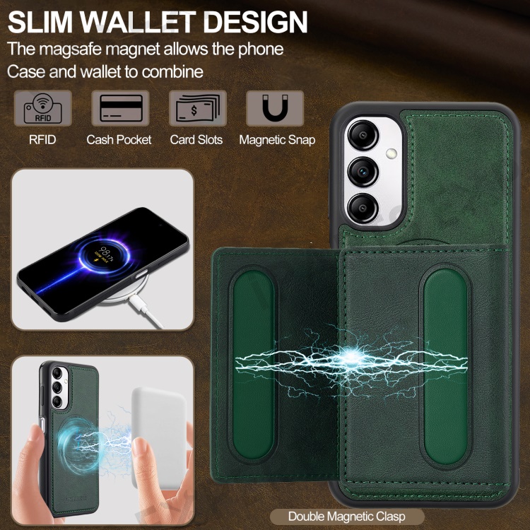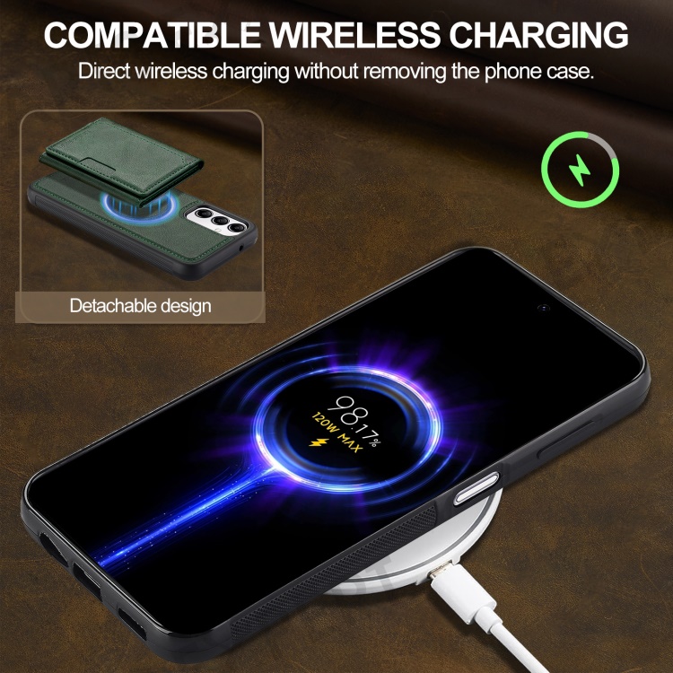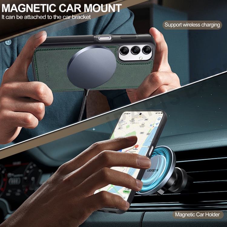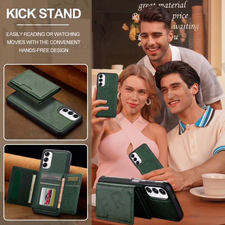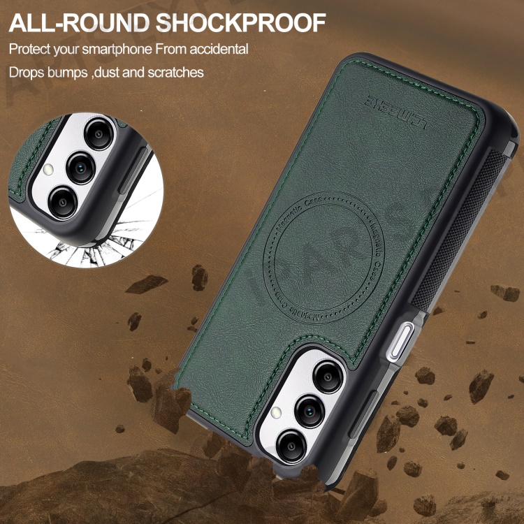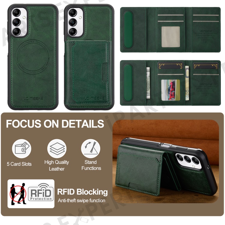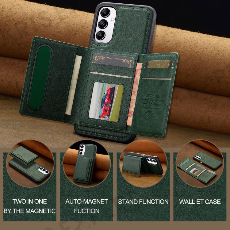 LC.IMEEKE L5 For Samsung Galaxy A34 5G Magnetic Phone Case Leather Back Cover with Detachable Card Holder - Green