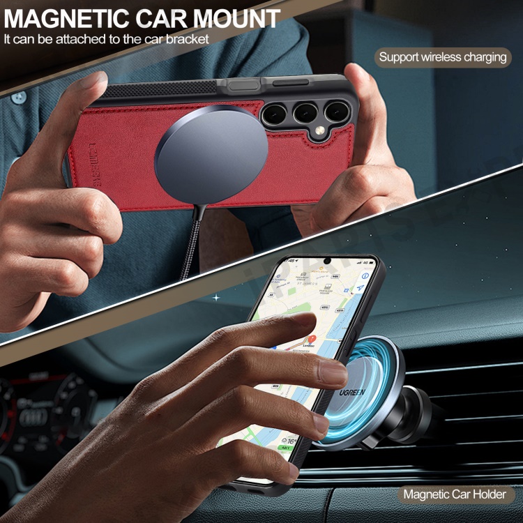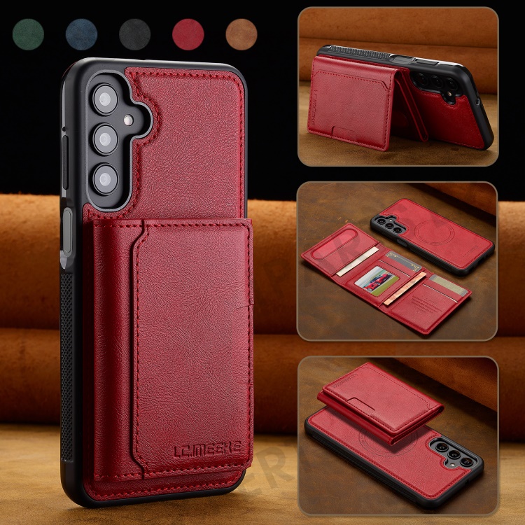 LC.IMEEKE L5 For Samsung Galaxy A55 5G Magnetic Phone Case Leather Back Cover with Detachable Card Holder - Red