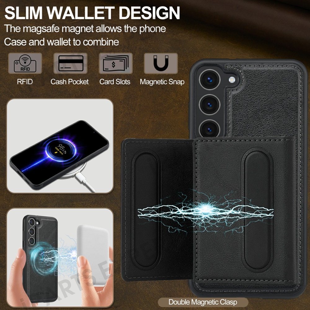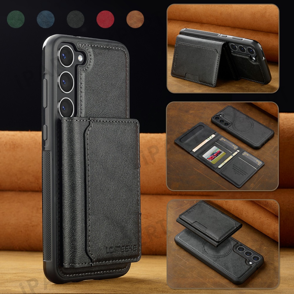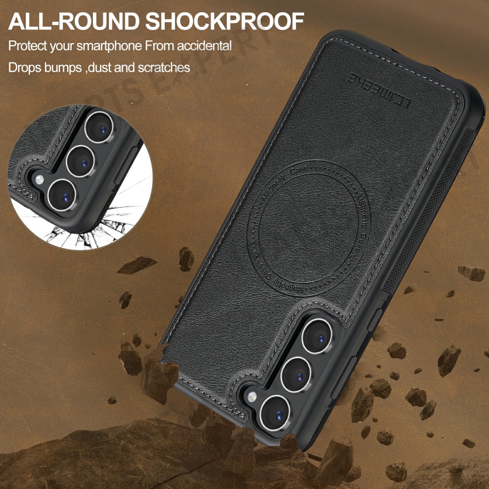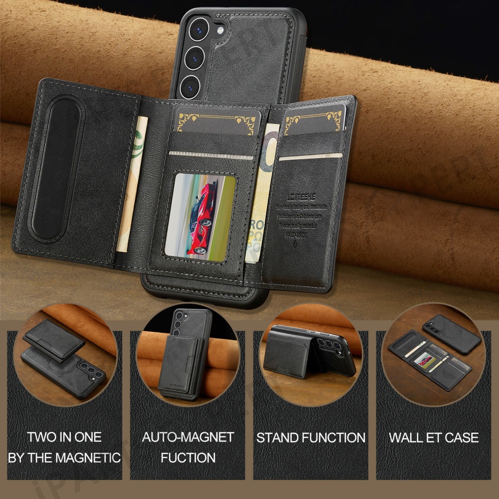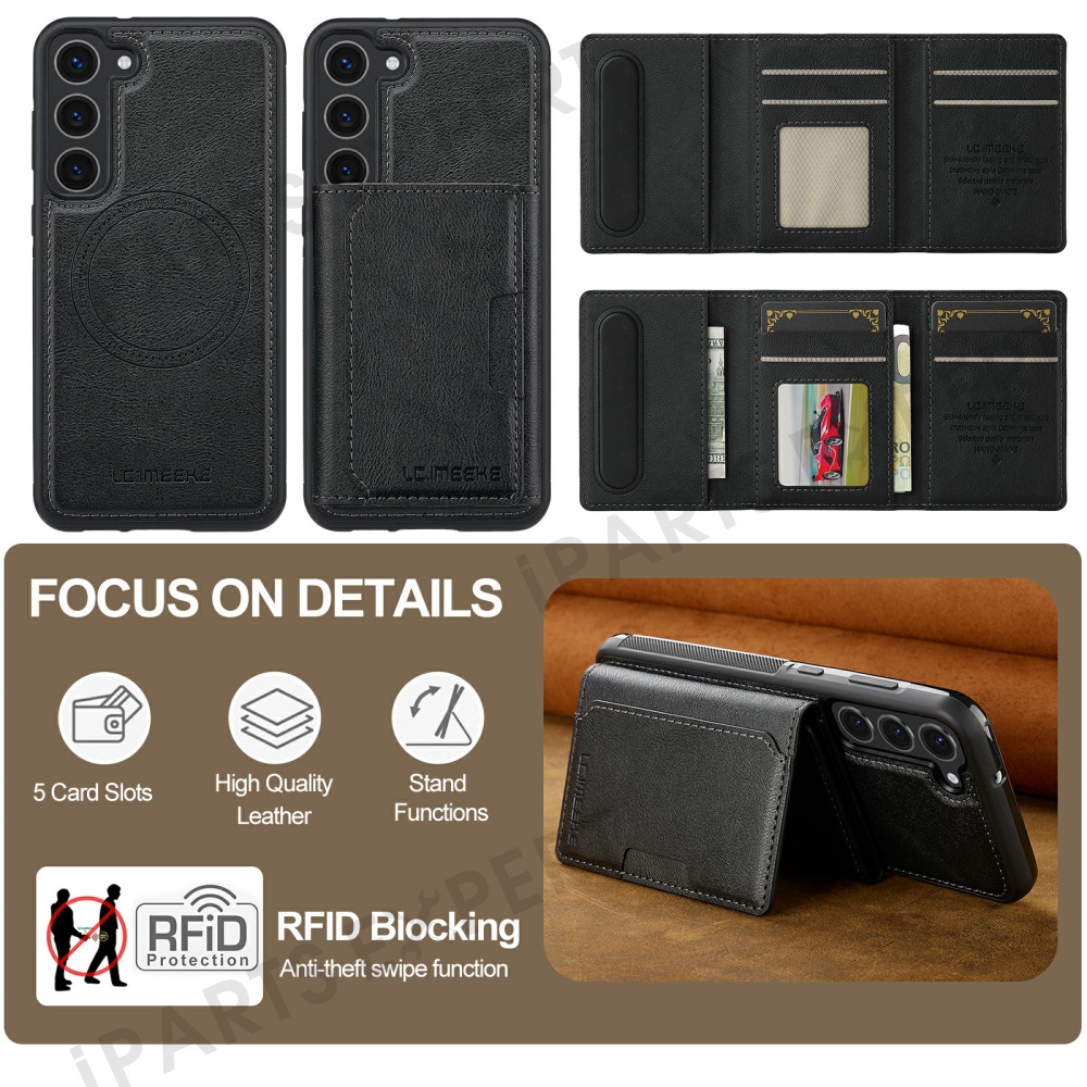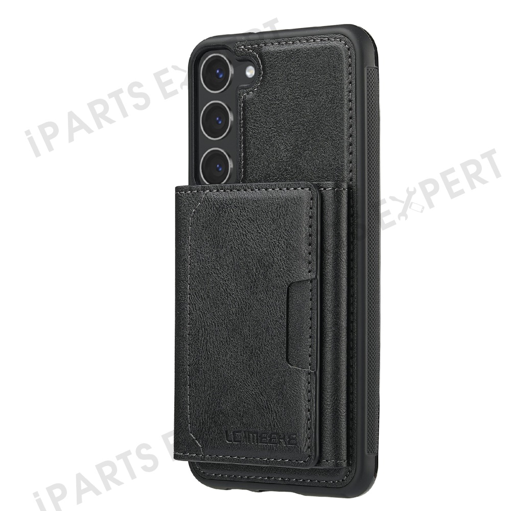 LC.IMEEKE L5 For Samsung Galaxy S23 Magnetic Phone Case Leather Back Cover with Detachable Card Holder - Black