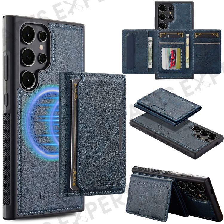 LC.IMEEKE L5 For Samsung Galaxy S24 Ultra Magnetic Phone Case Leather Back Cover with Detachable Card Holder - Blue