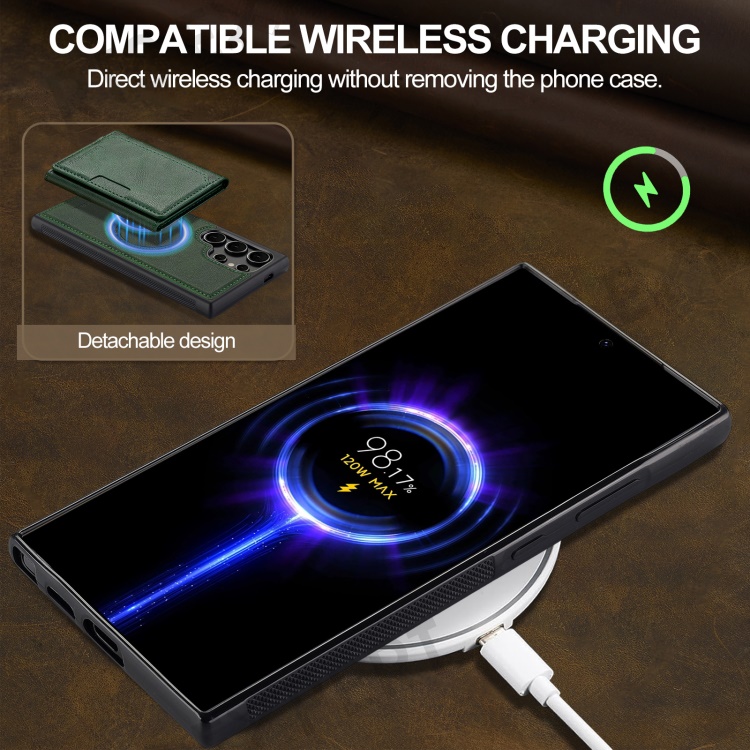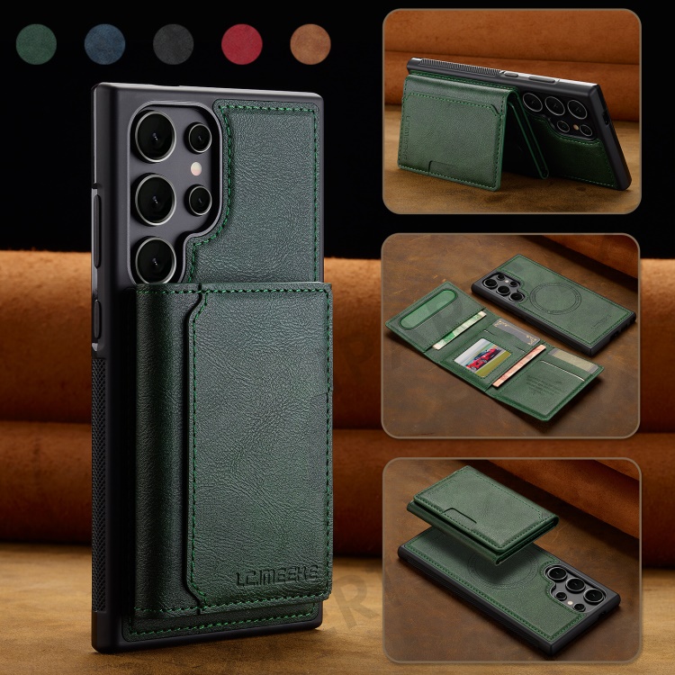 LC.IMEEKE L5 For Samsung Galaxy S24 Ultra Magnetic Phone Case Leather Back Cover with Detachable Card Holder - Green