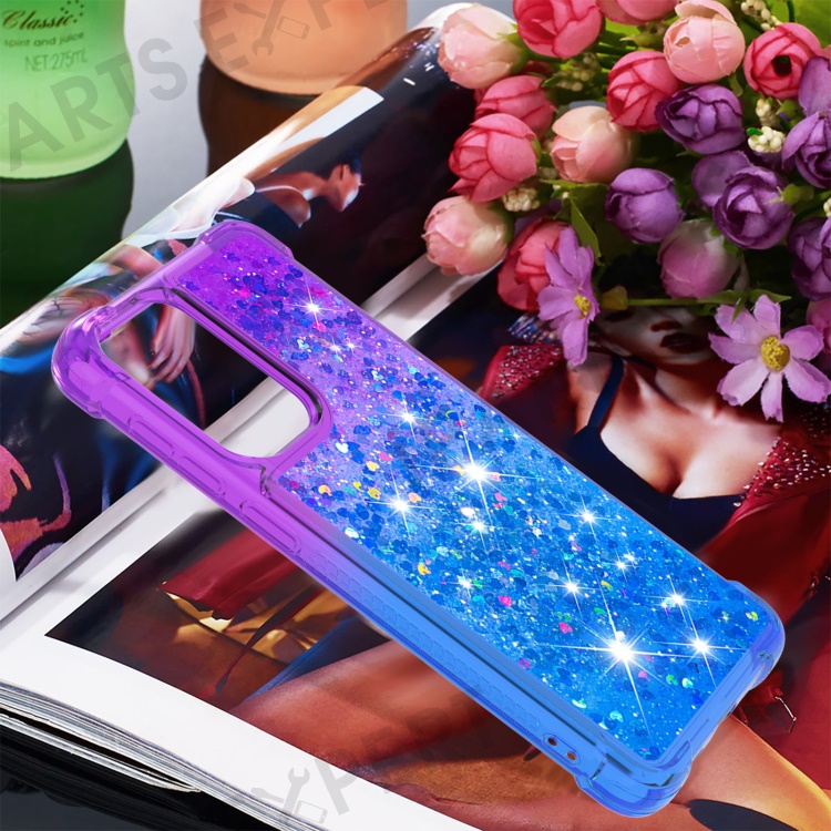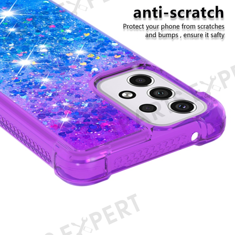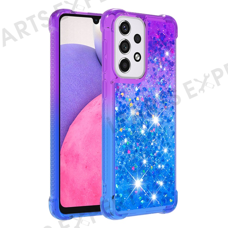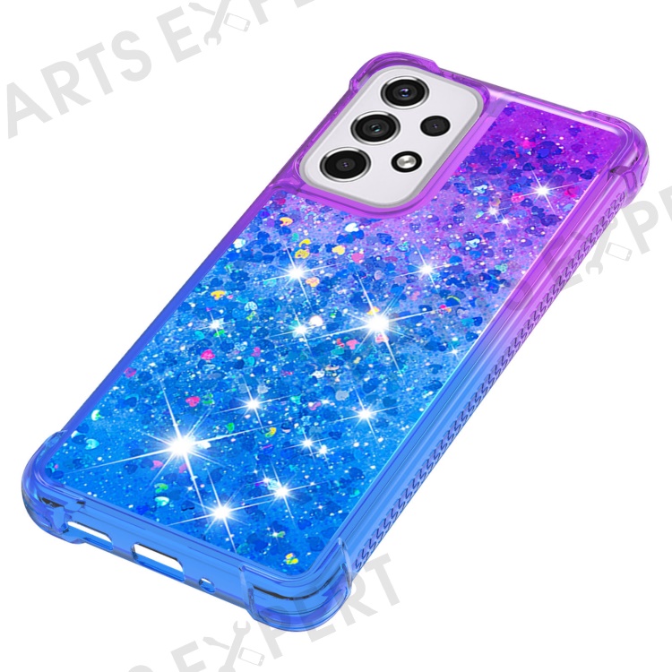 LE3 Series Gradient Glittering Sequins Quicksand TPU Cover Shell Dynamic Fun Phone Case for Samsung Galaxy A33 5G - Purple/Sky Blue
