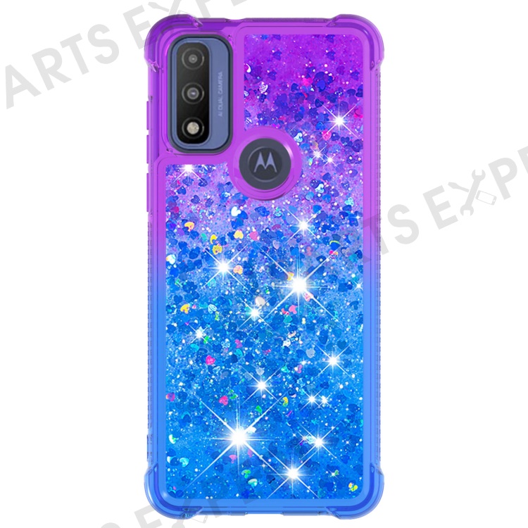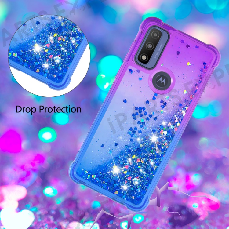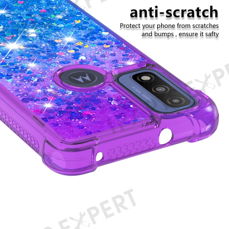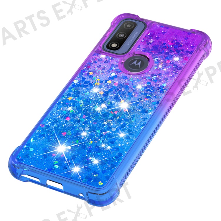 LE3 Series Gradient Quicksand Glitter Flowing Liquid TPU Phone Case for Motorola Moto G Power (2022) / G Pure - Purple/Blue