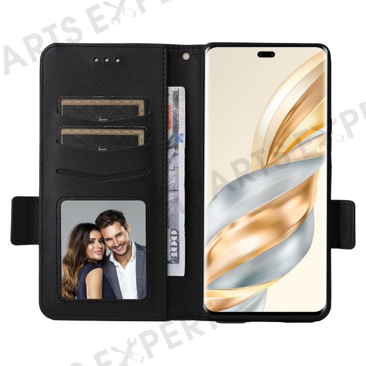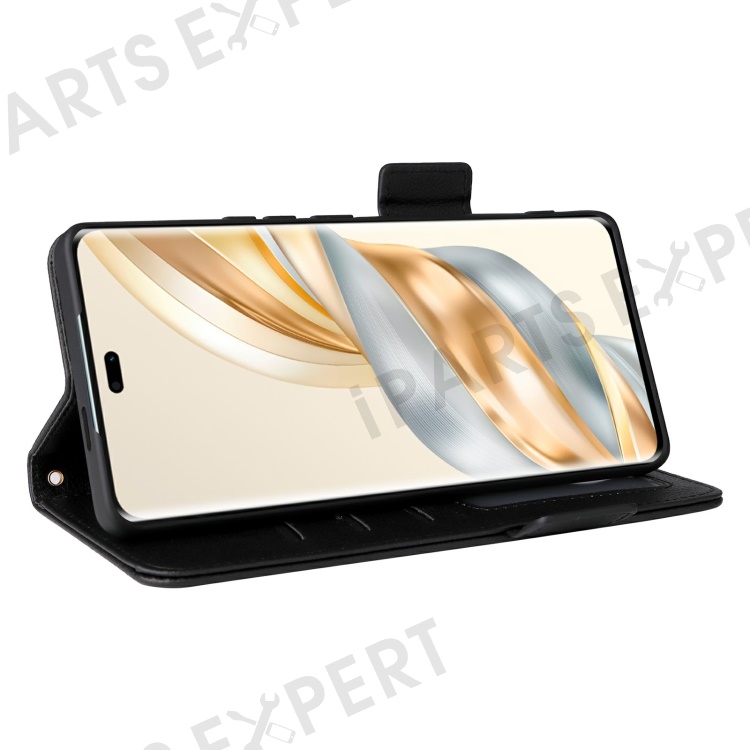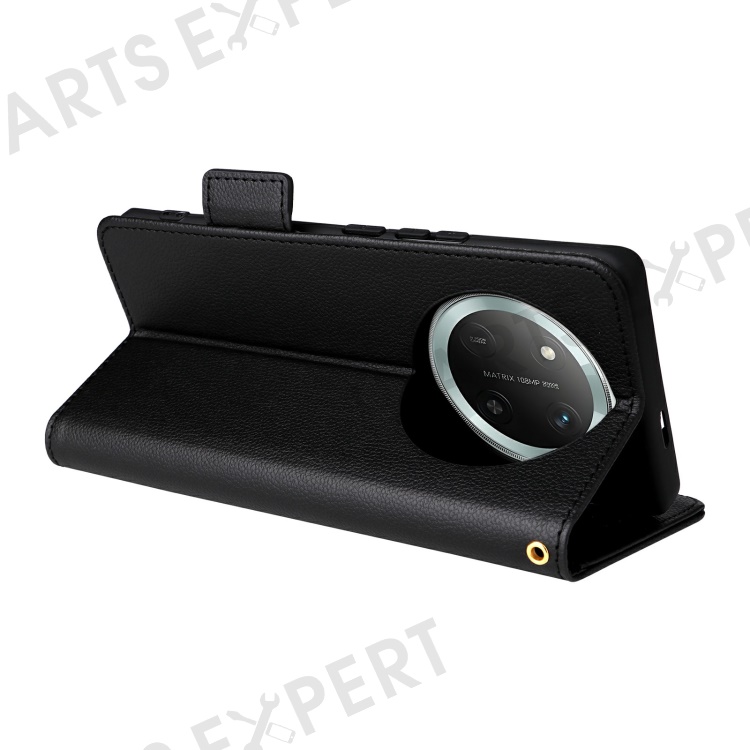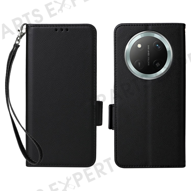 Leather Case with Wrist Strap for Honor X9c 5G / Magic7 Lite 5G / X60 Pro 5G Litchi Texture Wallet Phone Cover - Black