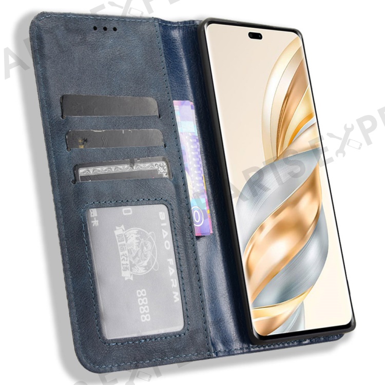 Leather Case for Honor X9c 5G / Magic7 Lite 5G / X60 Pro 5G Wallet Stand Retro Texture Phone Cover - Blue