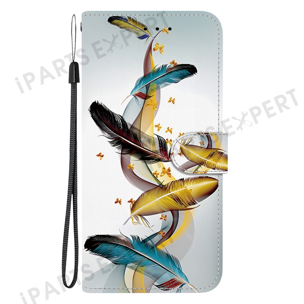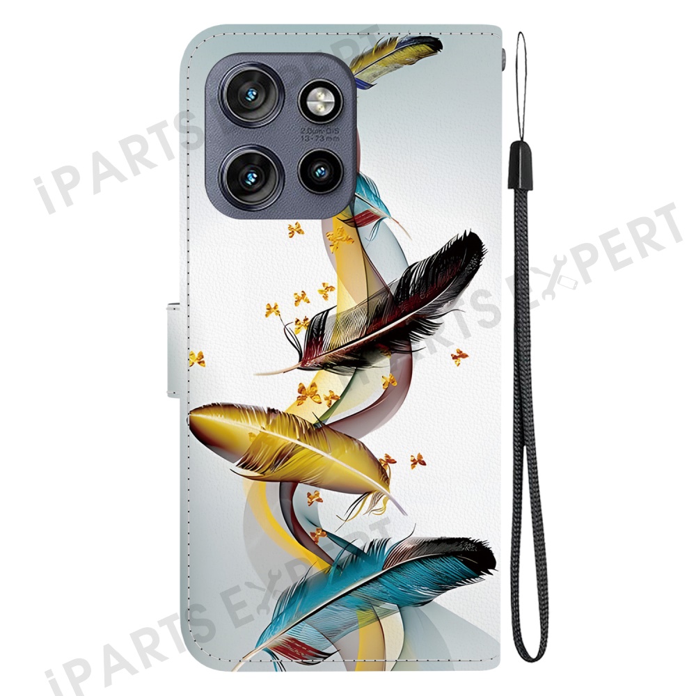 Leather Case For Motorola Edge 60 Neo 5G / Edge 50 Neo 5G / Moto S50 5G / ThinkPhone 25 5G Pattern Printing Flip Wallet Phone Cover with Lan - Golden Butterfly Feather
