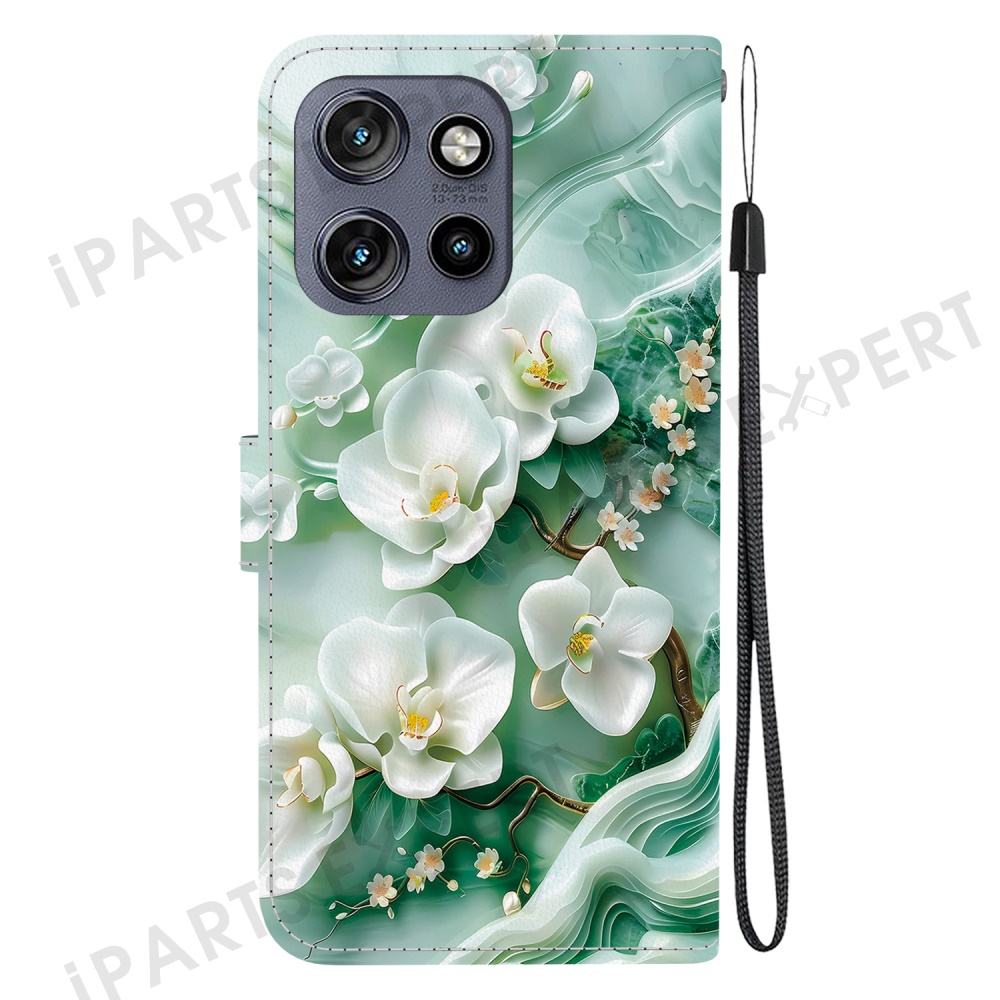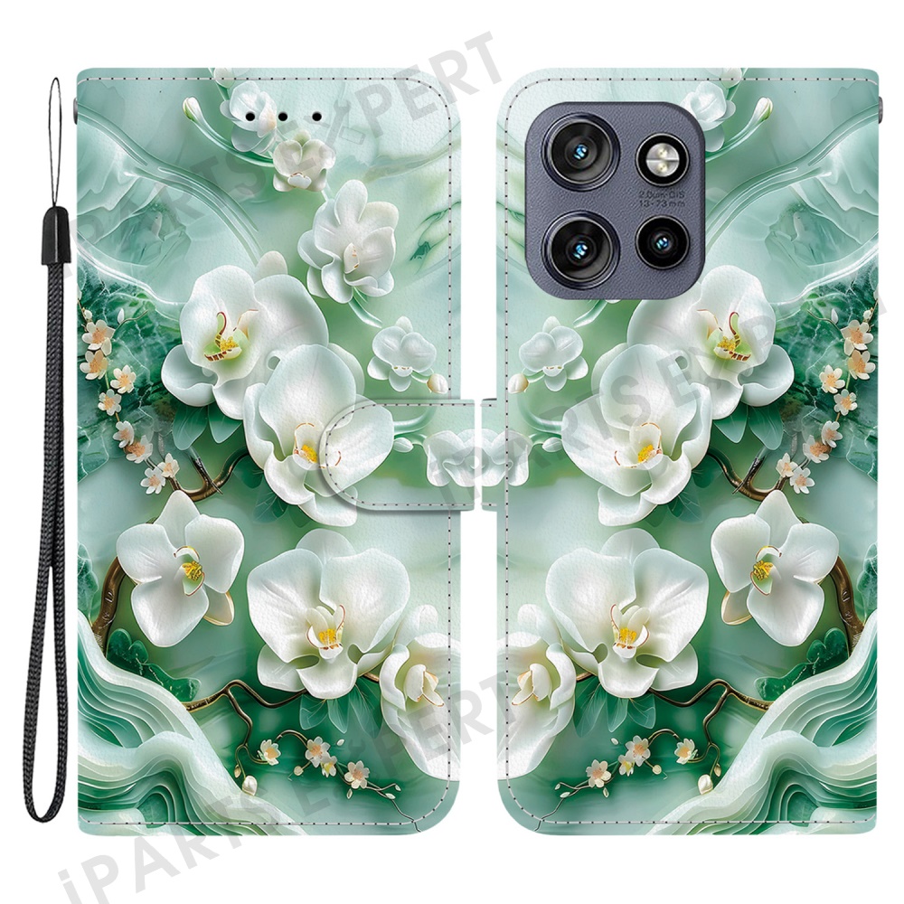 Leather Case For Motorola Edge 60 Neo 5G / Edge 50 Neo 5G / Moto S50 5G / ThinkPhone 25 5G Pattern Printing Flip Wallet Phone Cover with Lanyard - Jade Flower