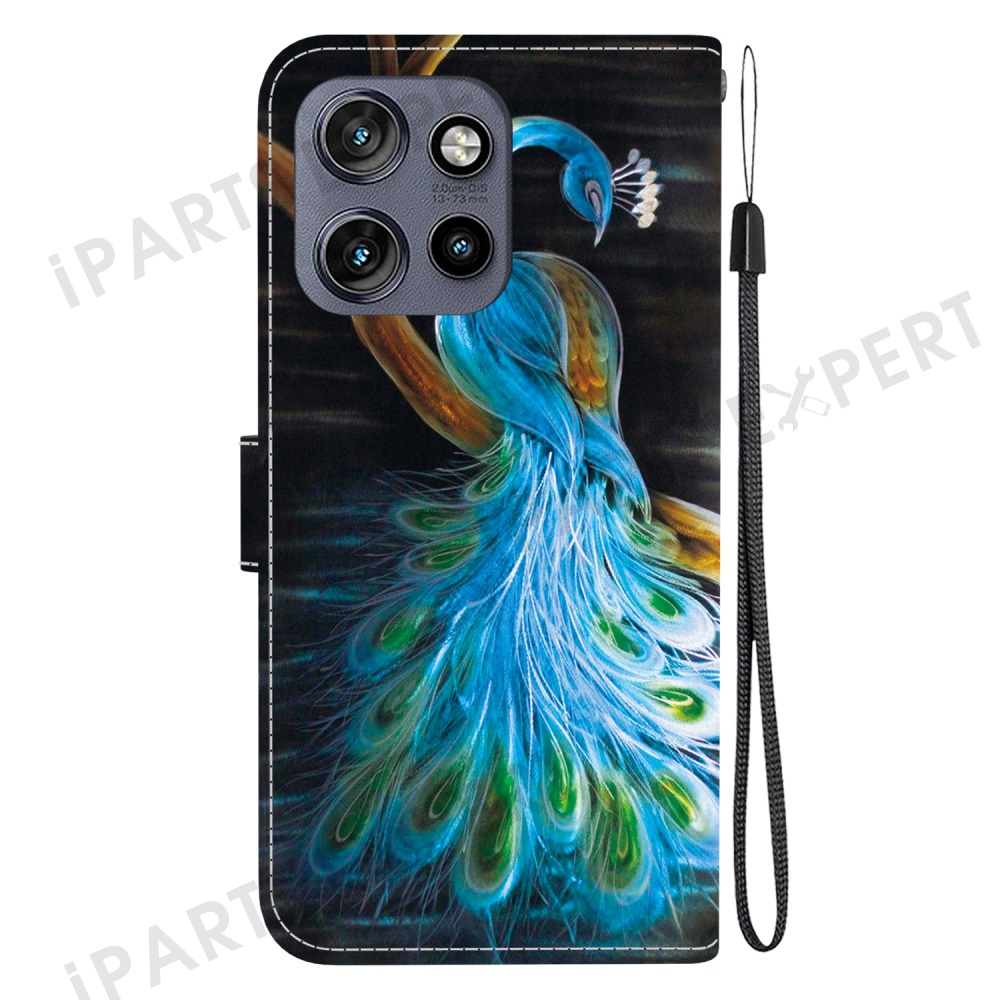 Leather Case For Motorola Edge 60 Neo 5G / Edge 50 Neo 5G / Moto S50 5G / ThinkPhone 25 5G Pattern Printing Flip Wallet Phone Cover with Lanyard - Peacock