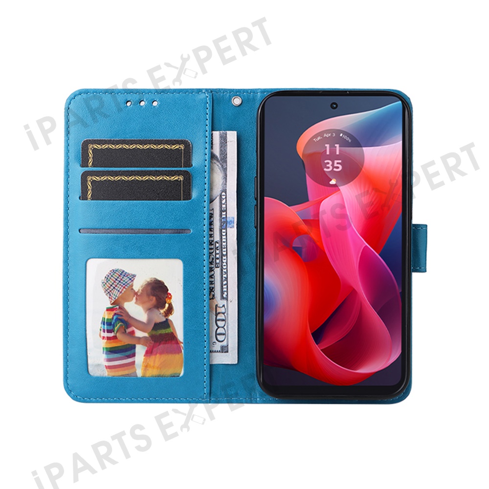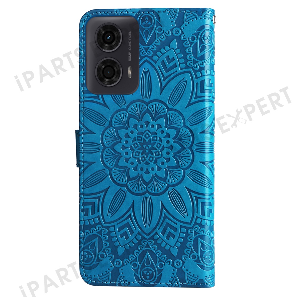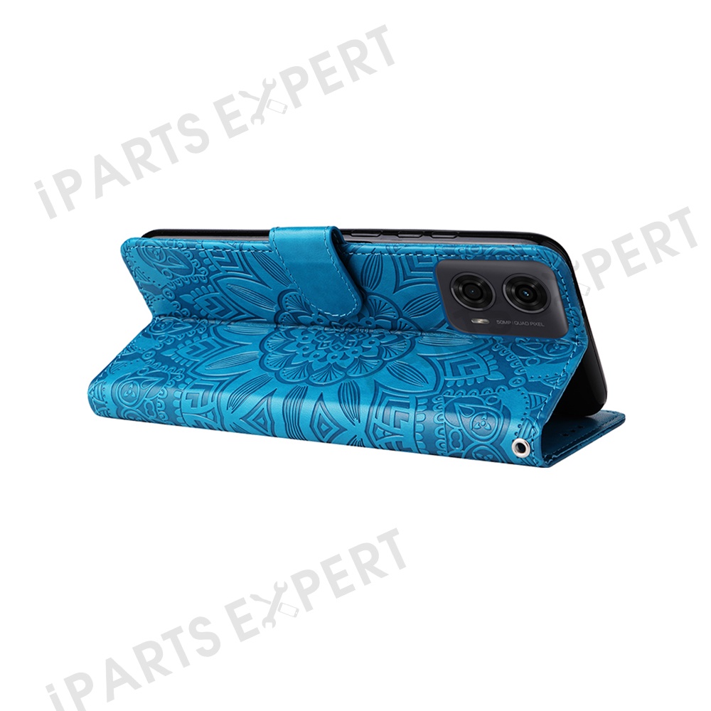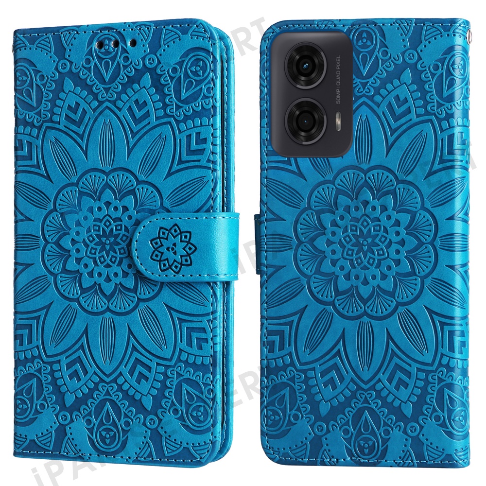 Leather Case For Motorola Moto G04 4G / G04s 4G / G24 4G / E14 4G Sunflower Imprint Wallet Phone Cover - Blue