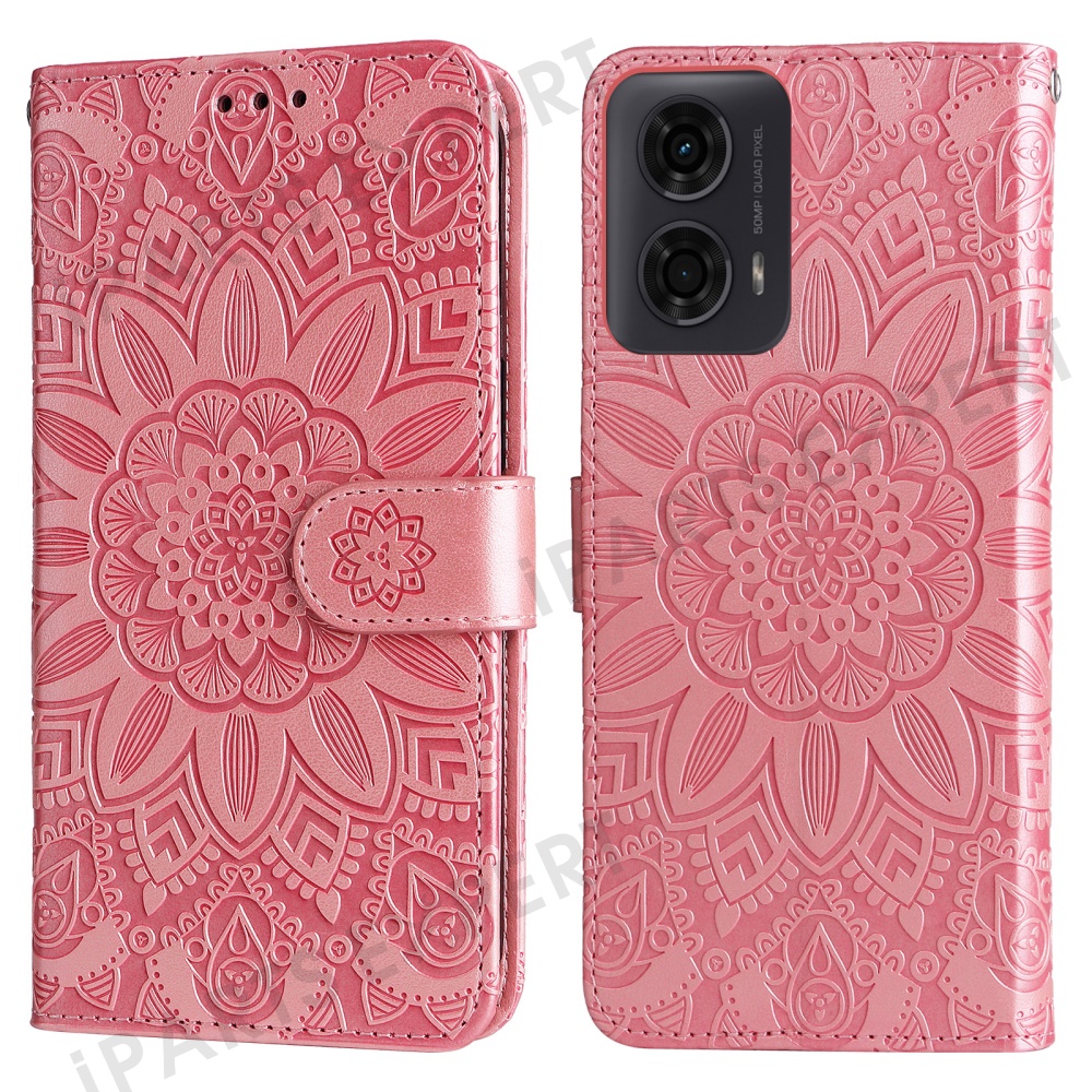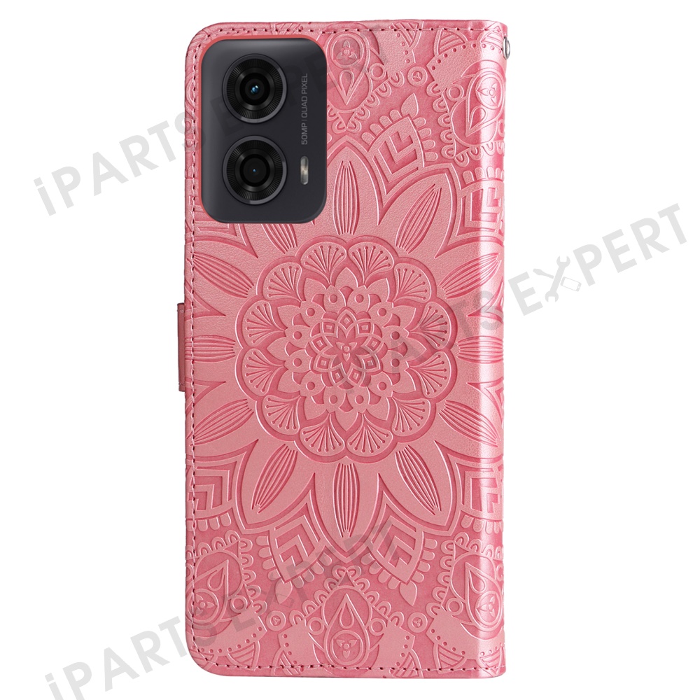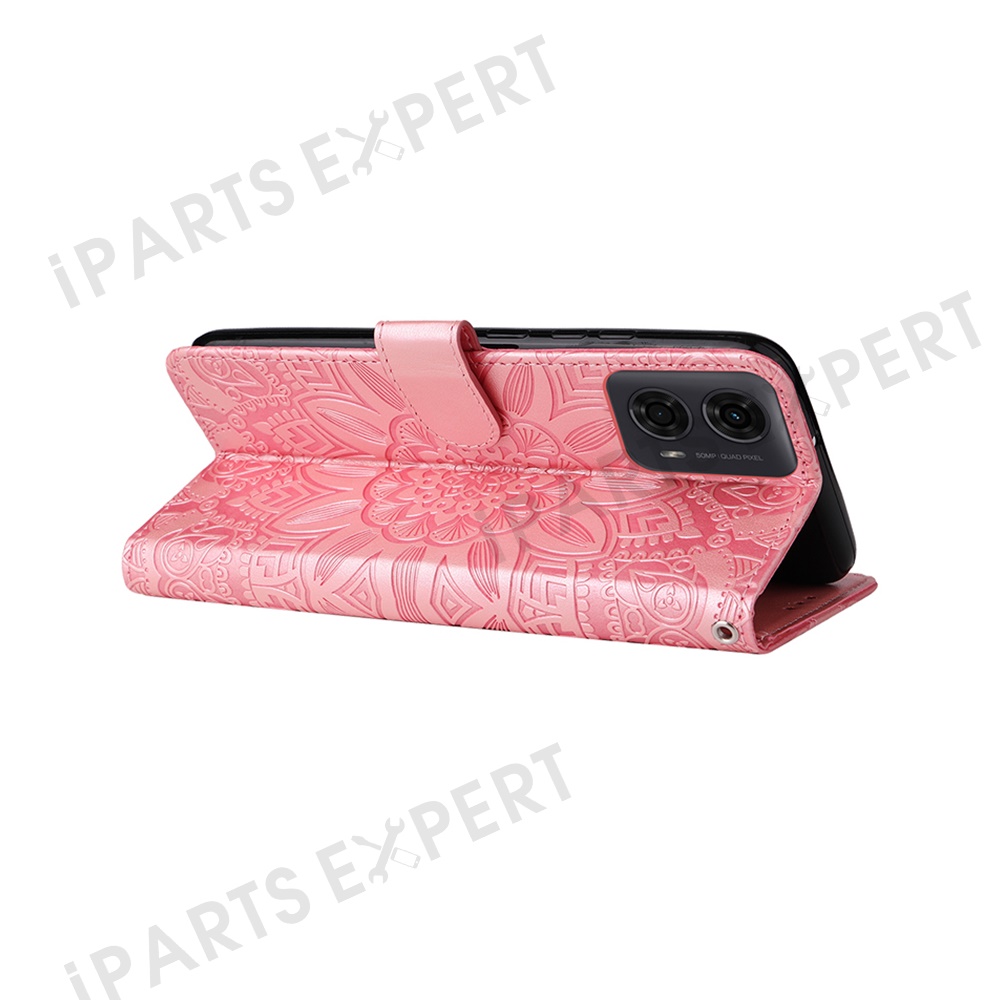 Leather Case For Motorola Moto G04 4G / G04s 4G / G24 4G / E14 4G Sunflower Imprint Wallet Phone Cover - Pink