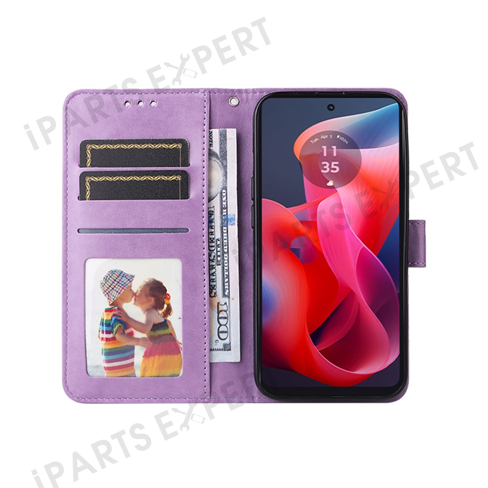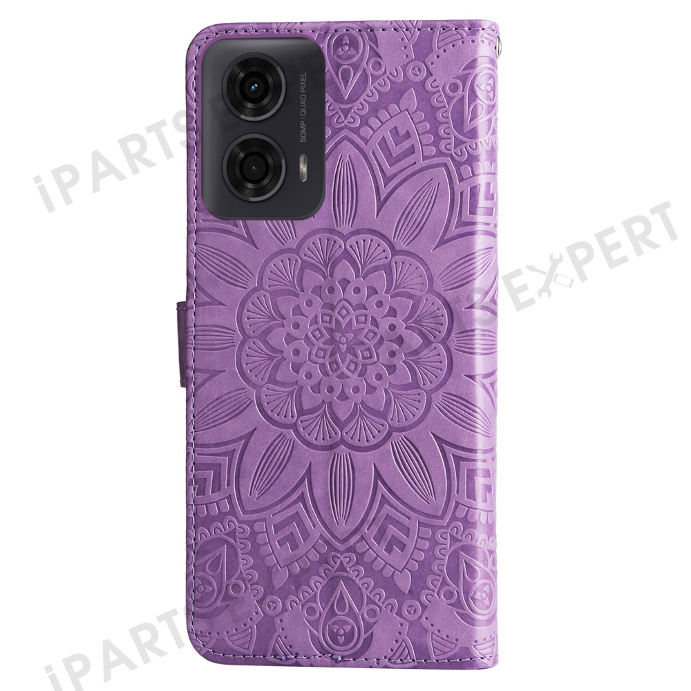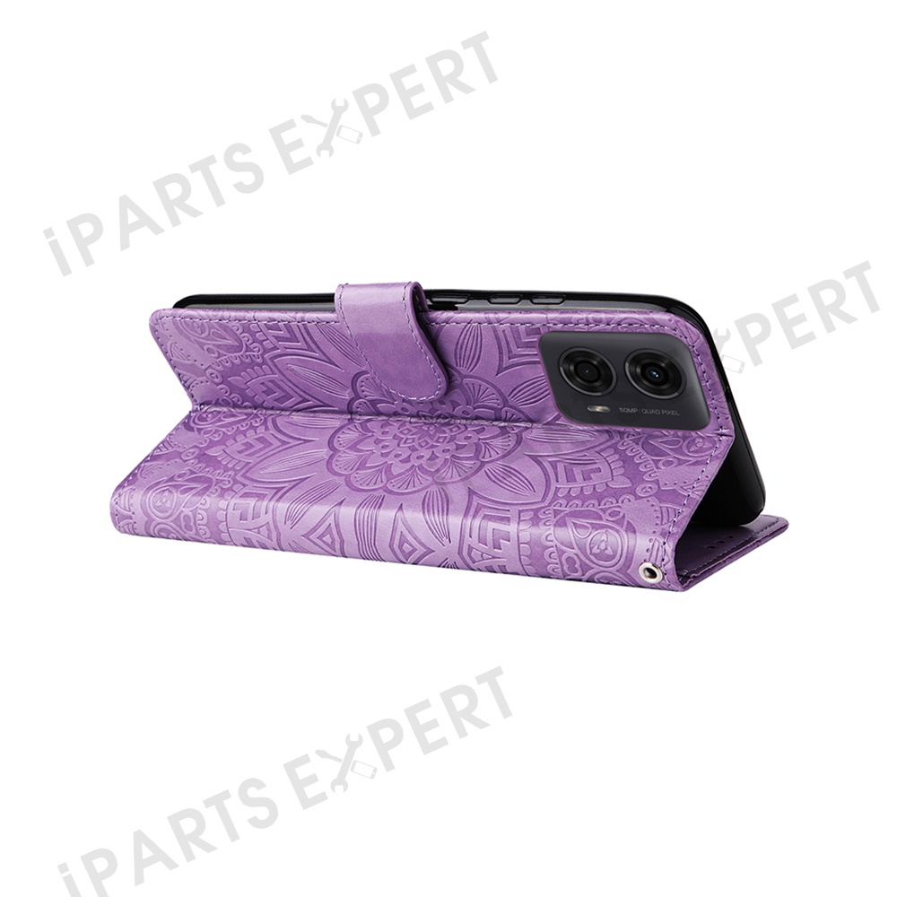 Leather Case For Motorola Moto G04 4G / G04s 4G / G24 4G / E14 4G Sunflower Imprint Wallet Phone Cover - Purple