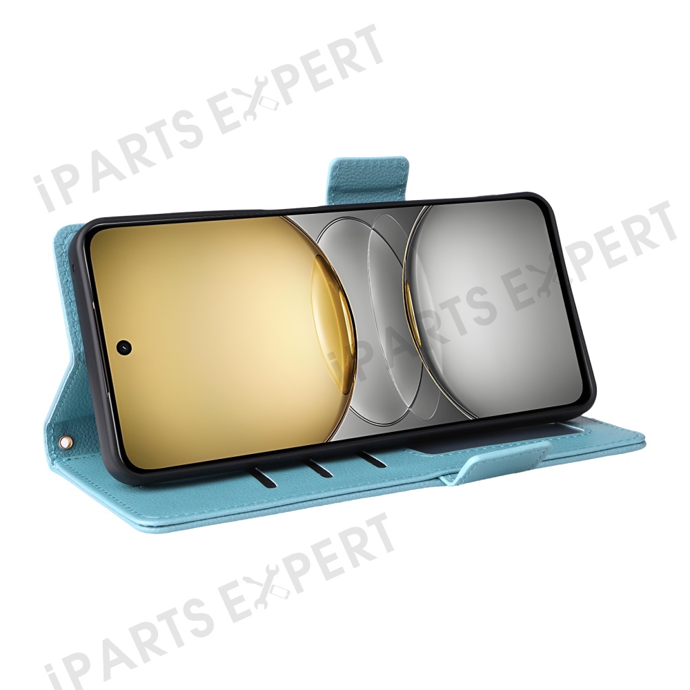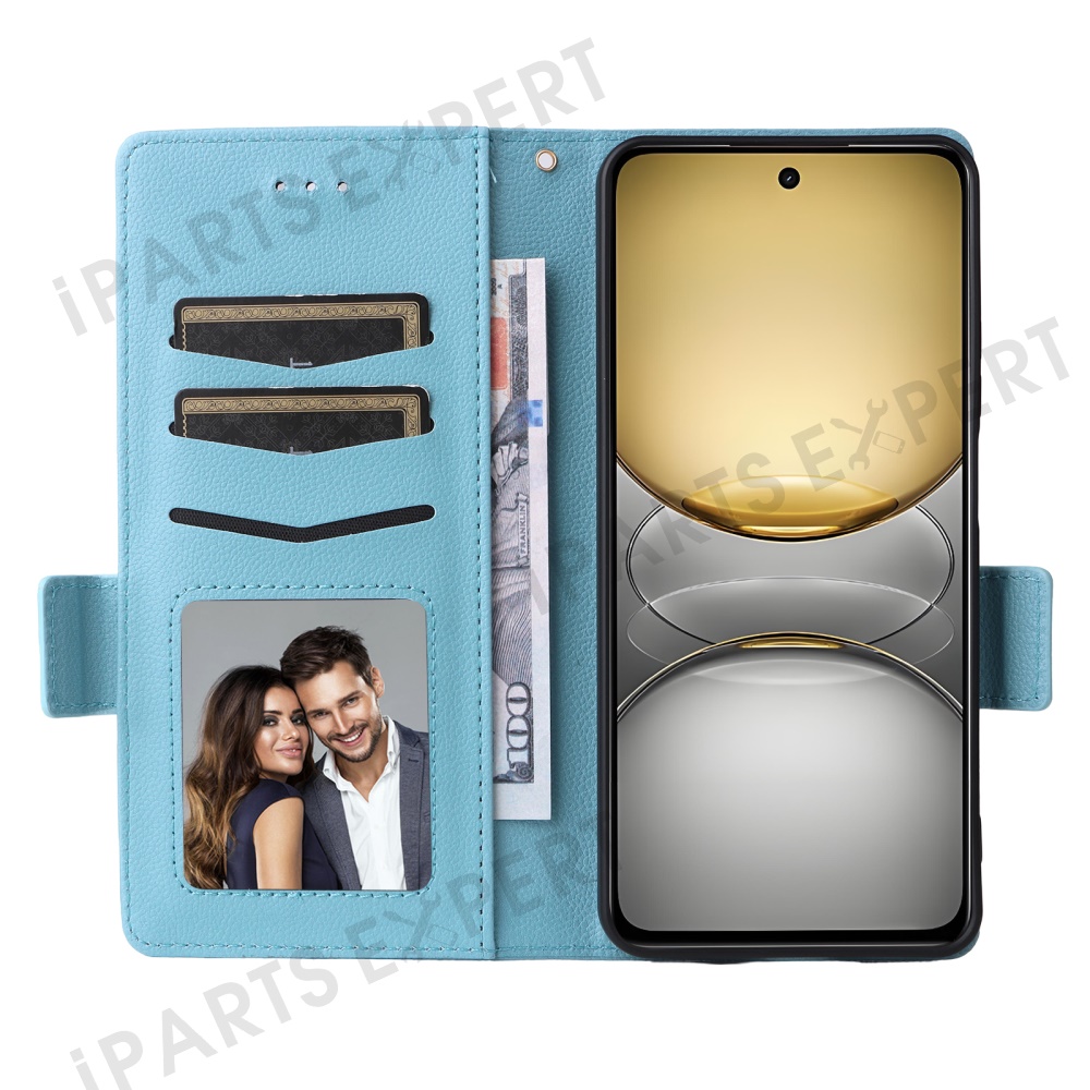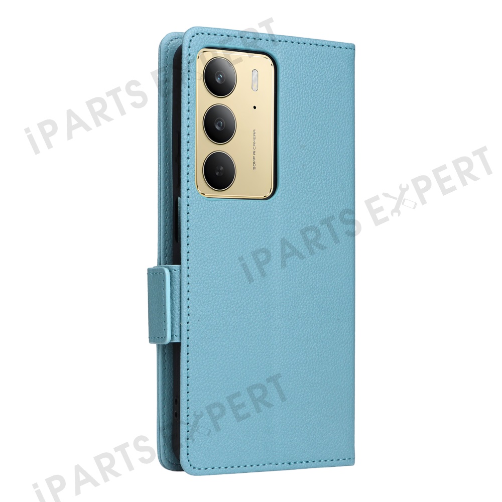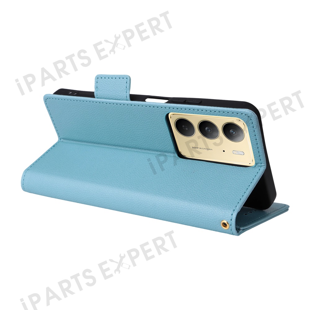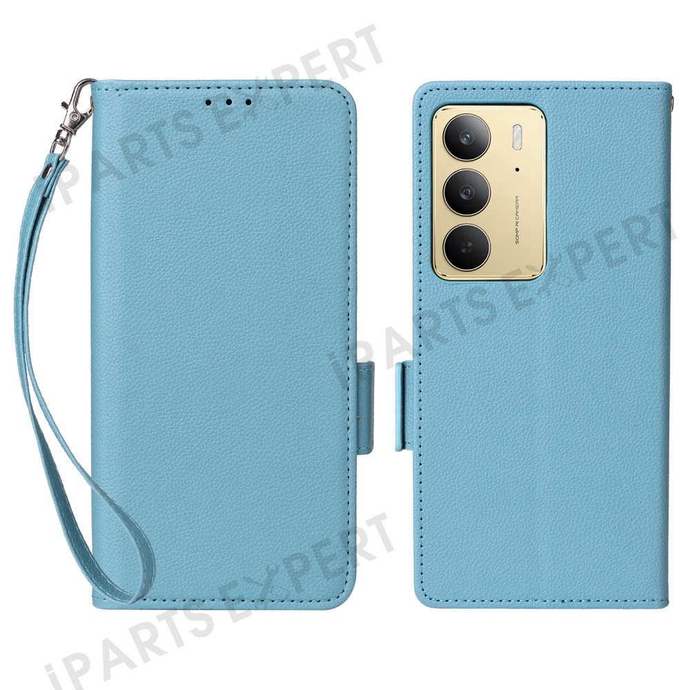 For Realme 14x 5G / V60 Pro 5G / C75 4G Case with Wrist Strap Litchi Texture PU Leather Wallet Phone Cover - Baby Blue