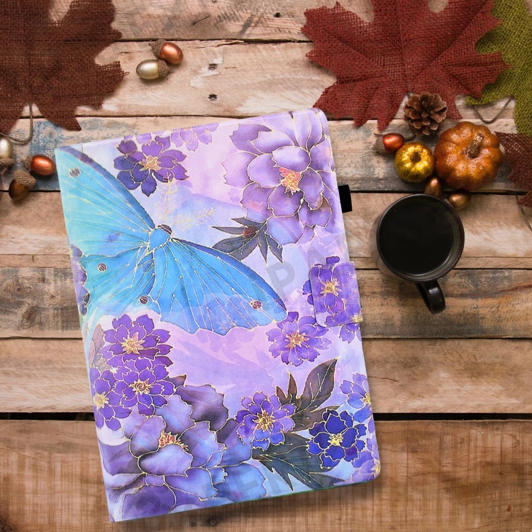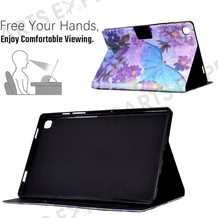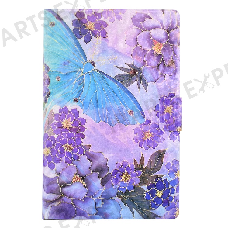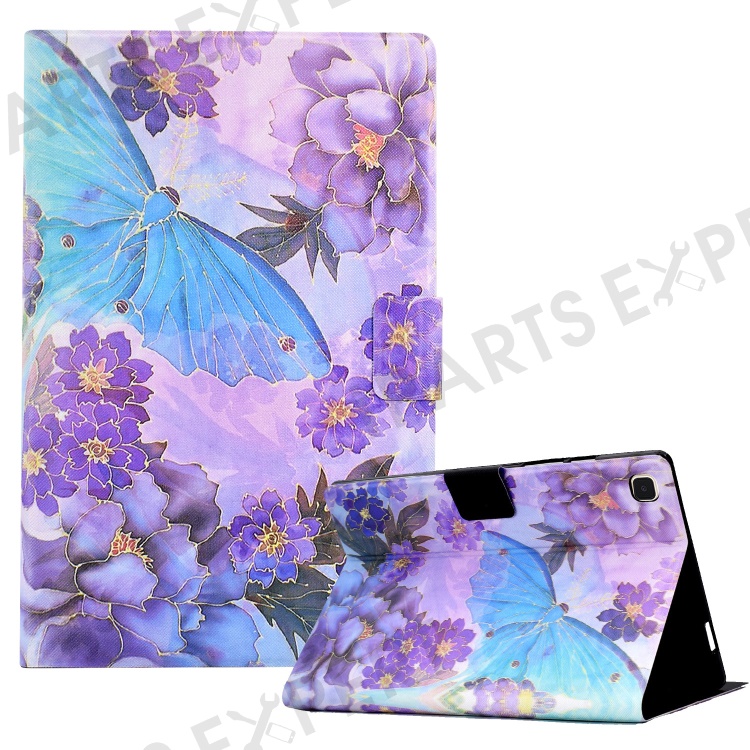 Leather Case for Samsung Galaxy Tab A7 10.4 (2020) / (2022) T500 / T505 Pattern Printed Folio Flip Tablet Cover with Card Holder - Peony Butterfly