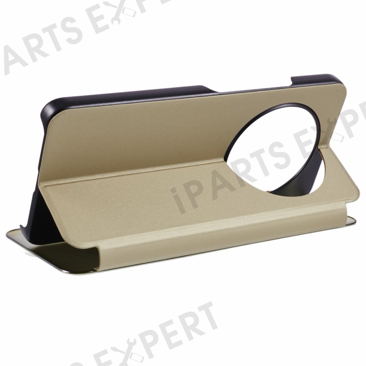 Leather Case for Xiaomi Poco C75 4G / Redmi 14R 5G / 14C 4G View Window Stand Flip Phone Cover - Gold